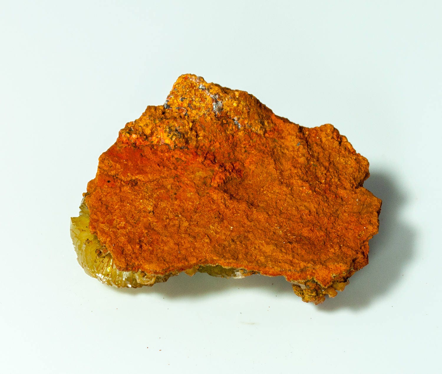 Radiating, lustrous crystals of apple green adamite on a contrasting gossan matrix! Sweet miniature specimen!