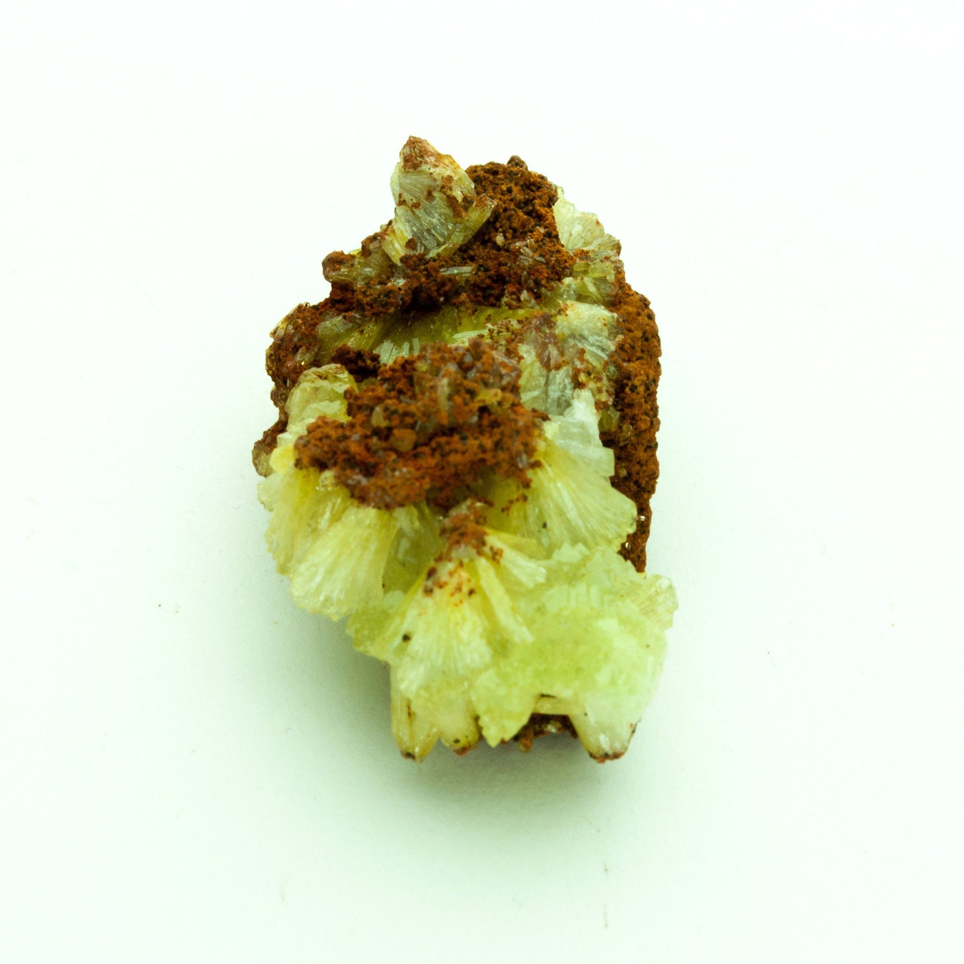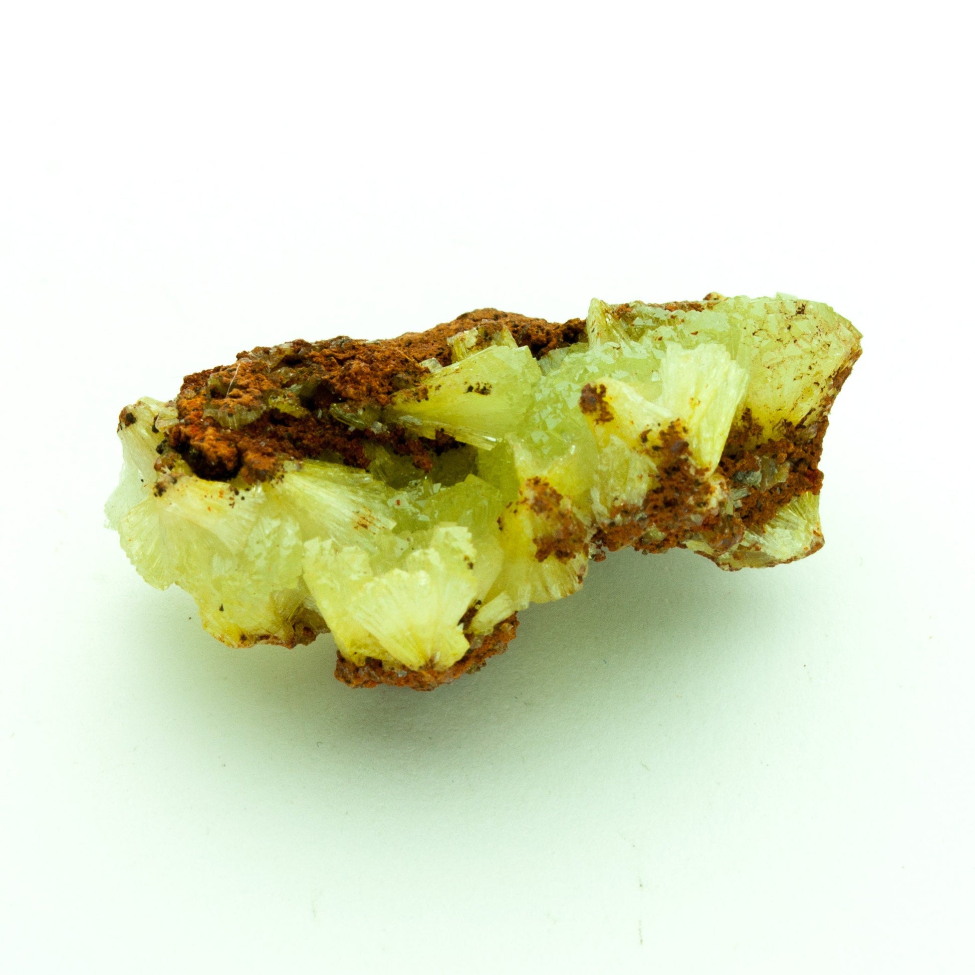 Radiating, highly lustrous crystals of bright yellow-green adamite on a contrasting gossan matrix! Sweet miniature specimen!