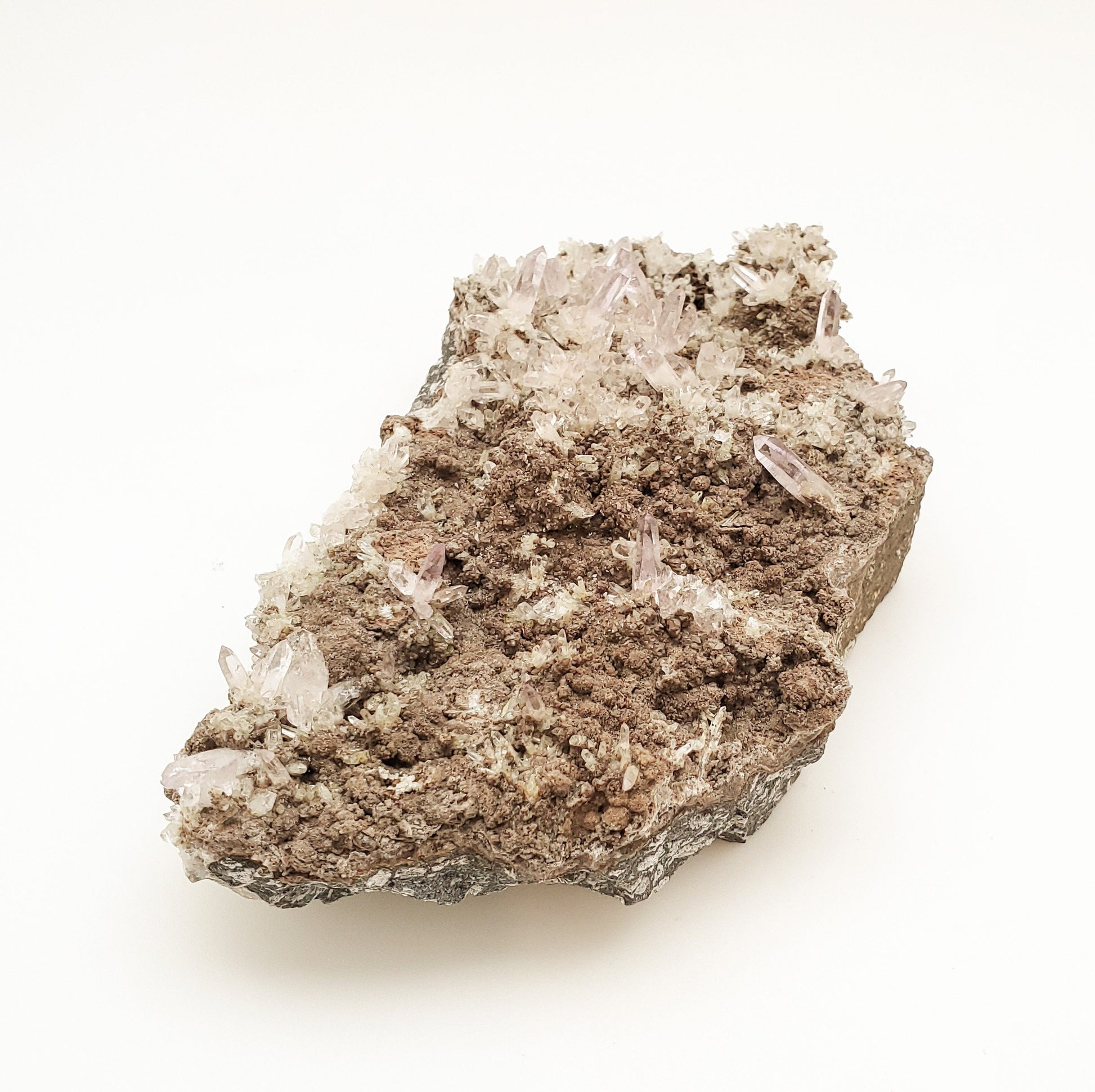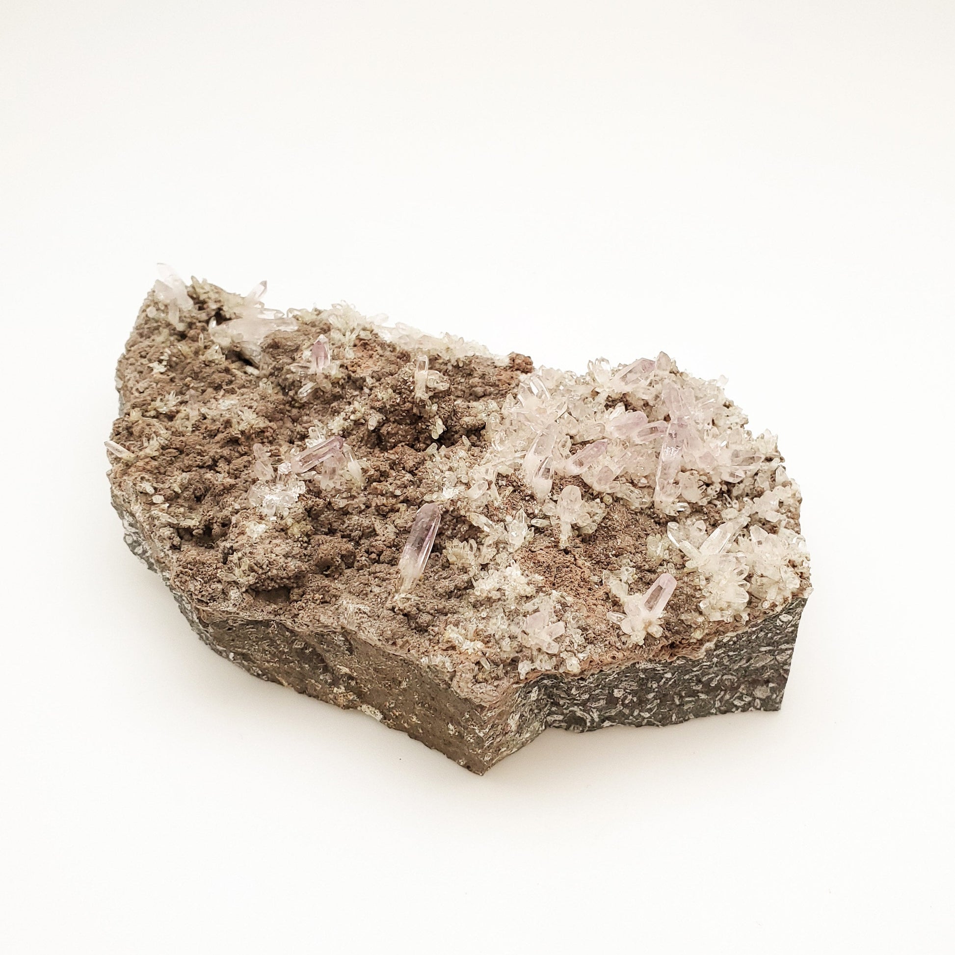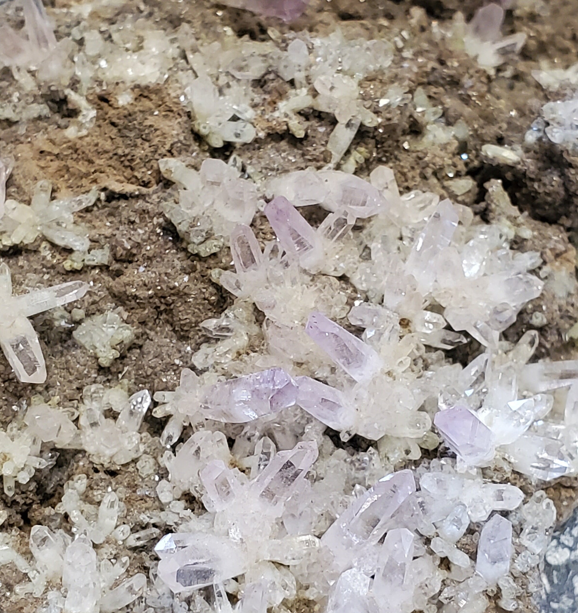 Offered here is a small cabinet size plate of light purple amethyst crystals and sparkling druze on matrix!