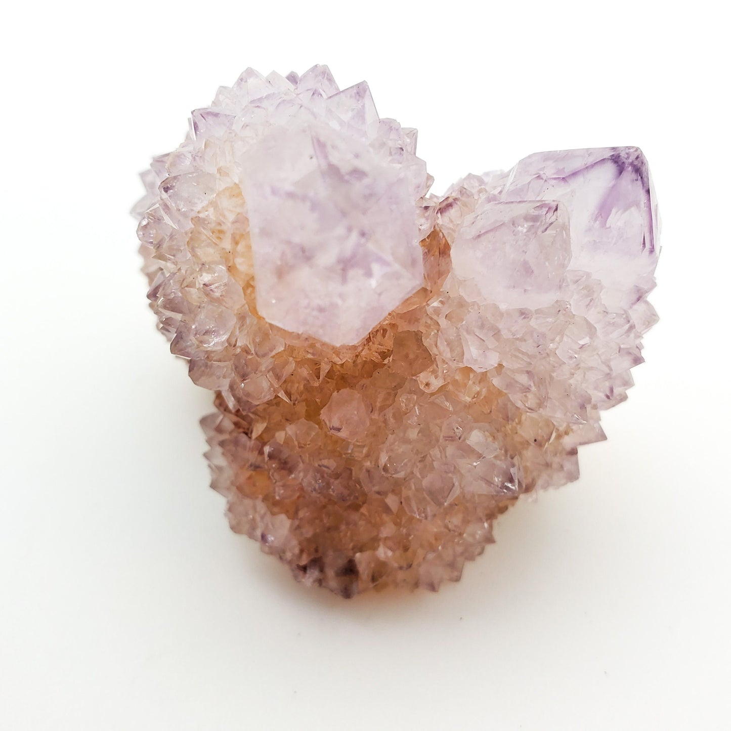 These South African Amethyst specimens are referred to as "Cactus Quartz". The center spires are actually amethyst scepters. The scepters are encircled by a second generation of smaller crystals making these specimens truly unique. These are sometimes also referred to as "Spirit Quartz" or "Pineapple Quartz".