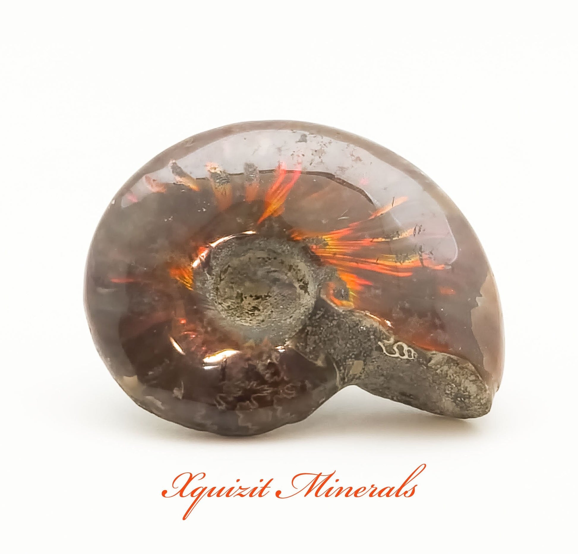 Offered here is a beautiful, Madreperla "Mother of Pearl" ammonite fossil! Natural iridescent hues of fiery red, orange and yellow!
