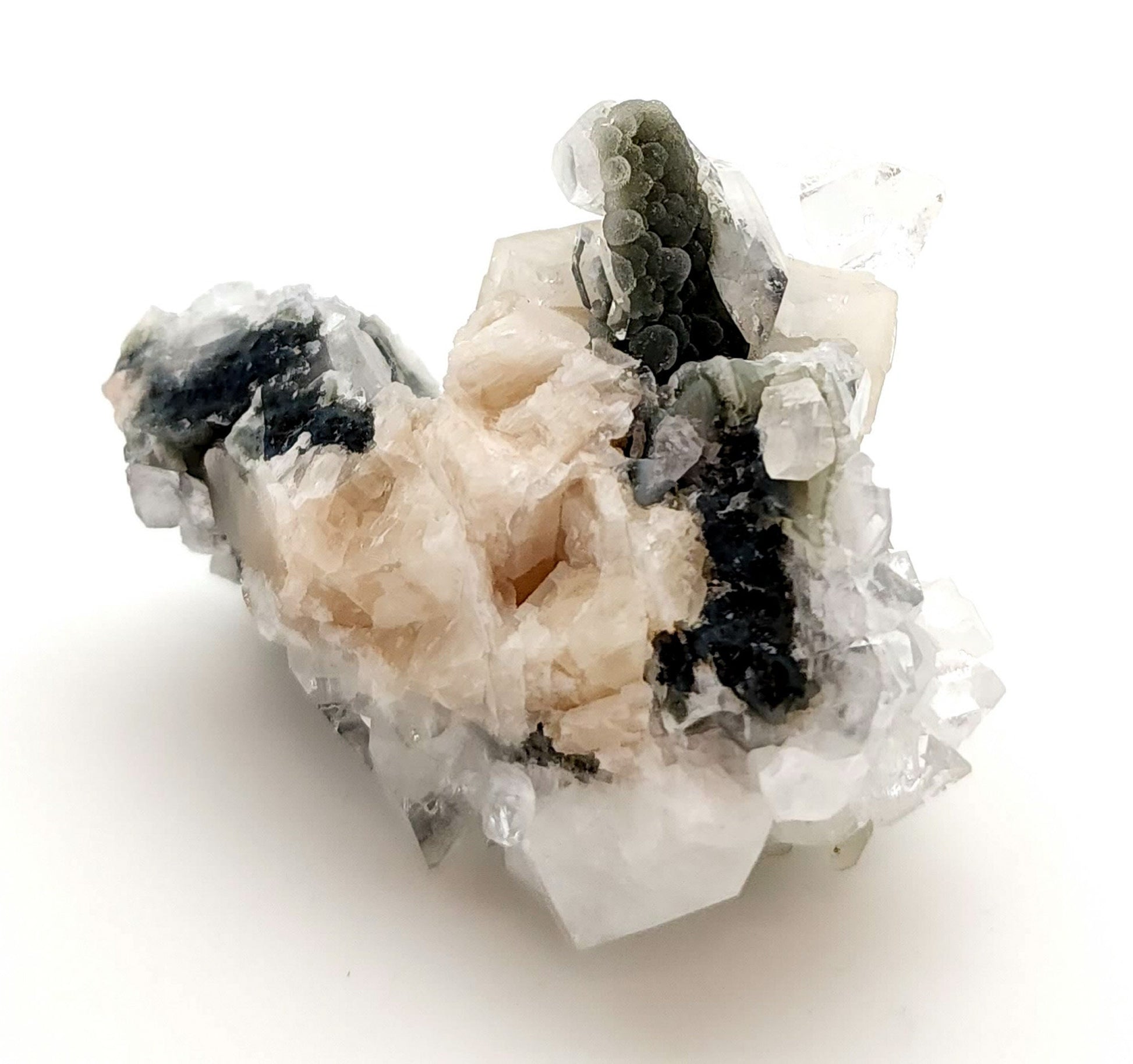 Apophyllite, Calcite and Druse Chalcedony, Deccan Plateau, India (L1)