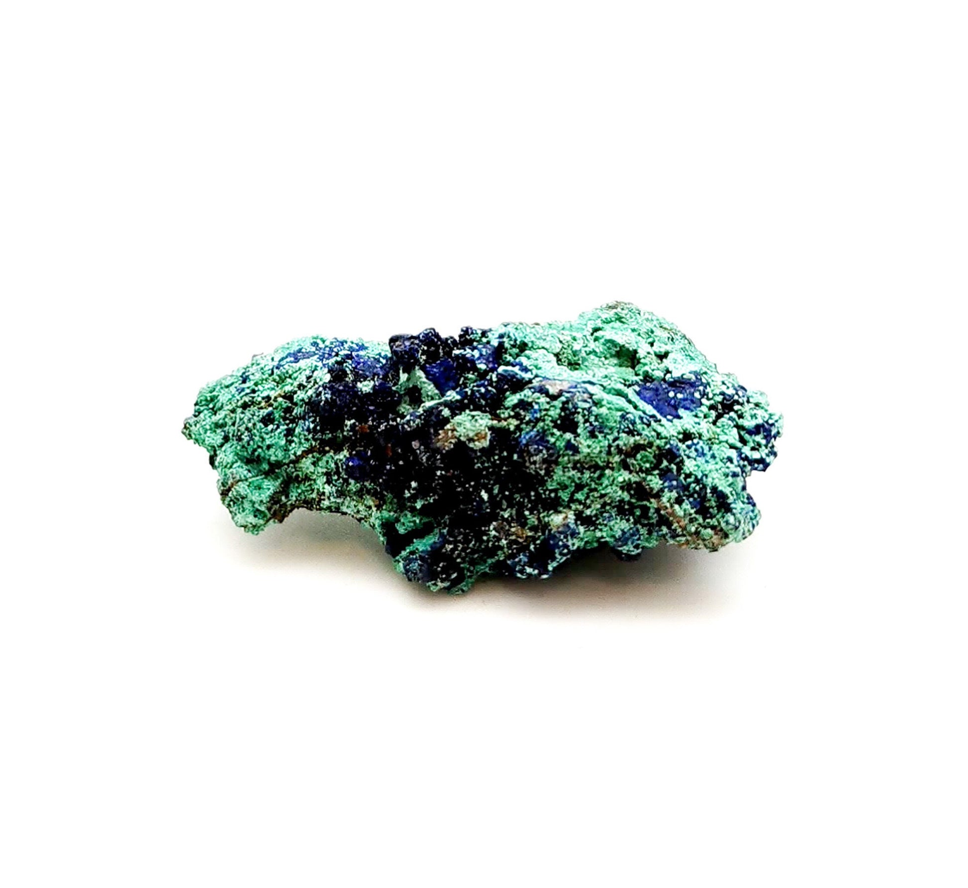 Offered here from this famed location is a beautiful specimen of sparkling rich dark blue azurite crystals on contrasting green malachite!