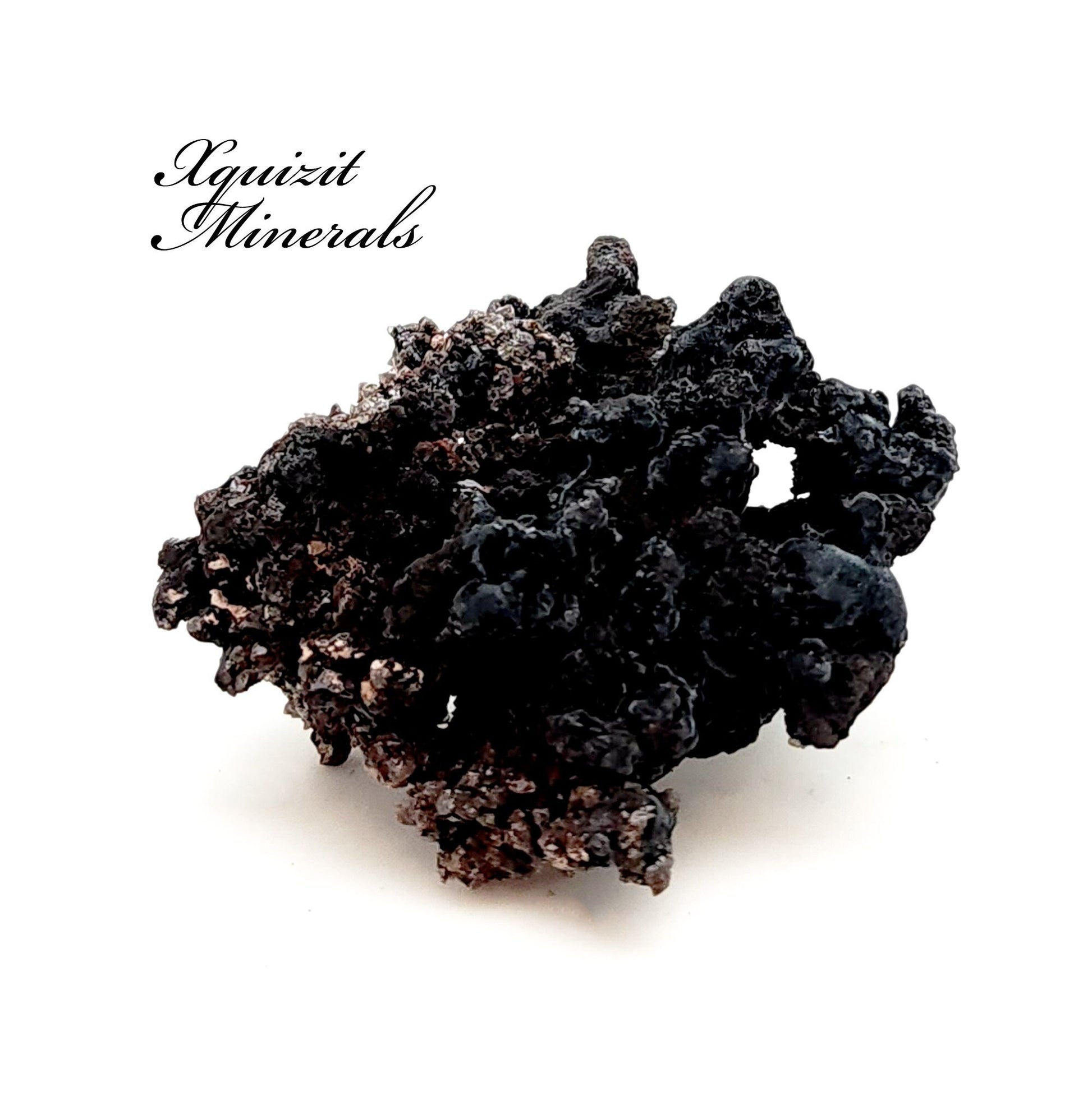 Offered here is a beautiful specimen of velvety, botryoidal psilomelane with calcite crystals. Very unique and aesthetic piece!