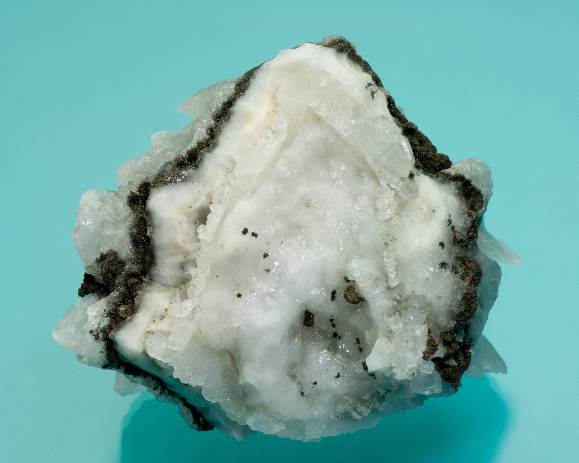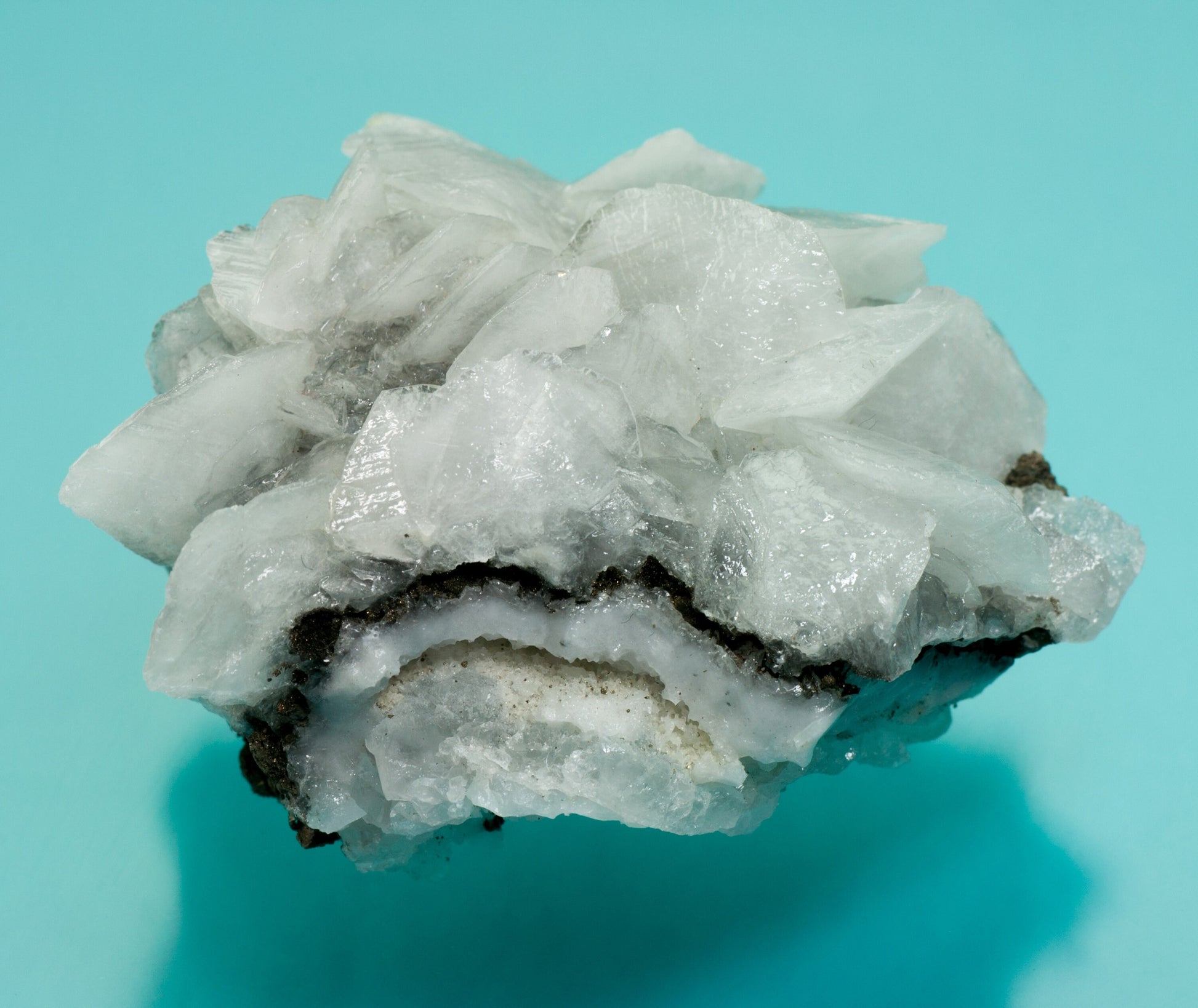 Nice specimen of lustrous, bright white calcite crystals on fluorite!