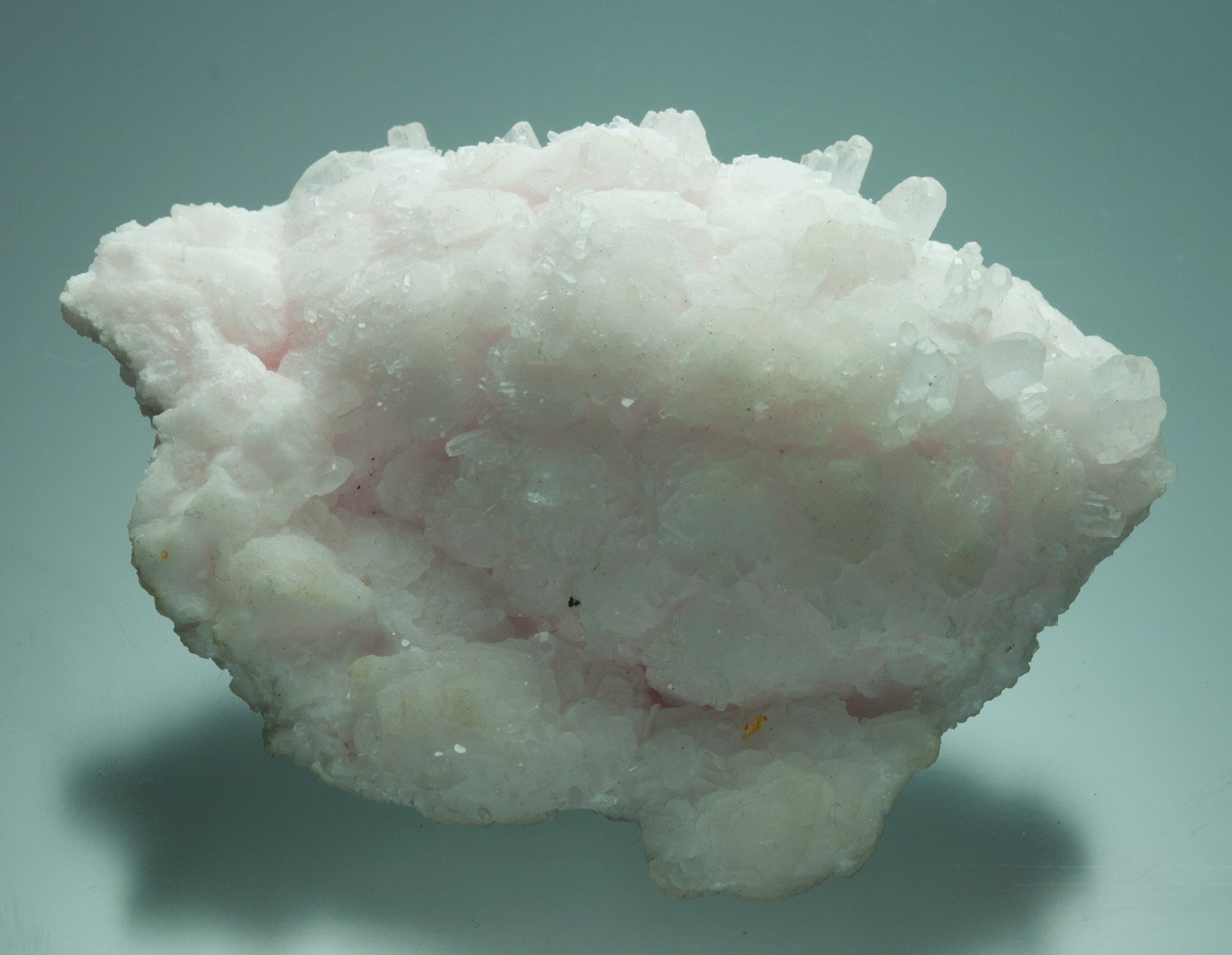 Beautiful specimen! Sharp, translucent soft pink calcite crystals cover lustrous druze matrix!