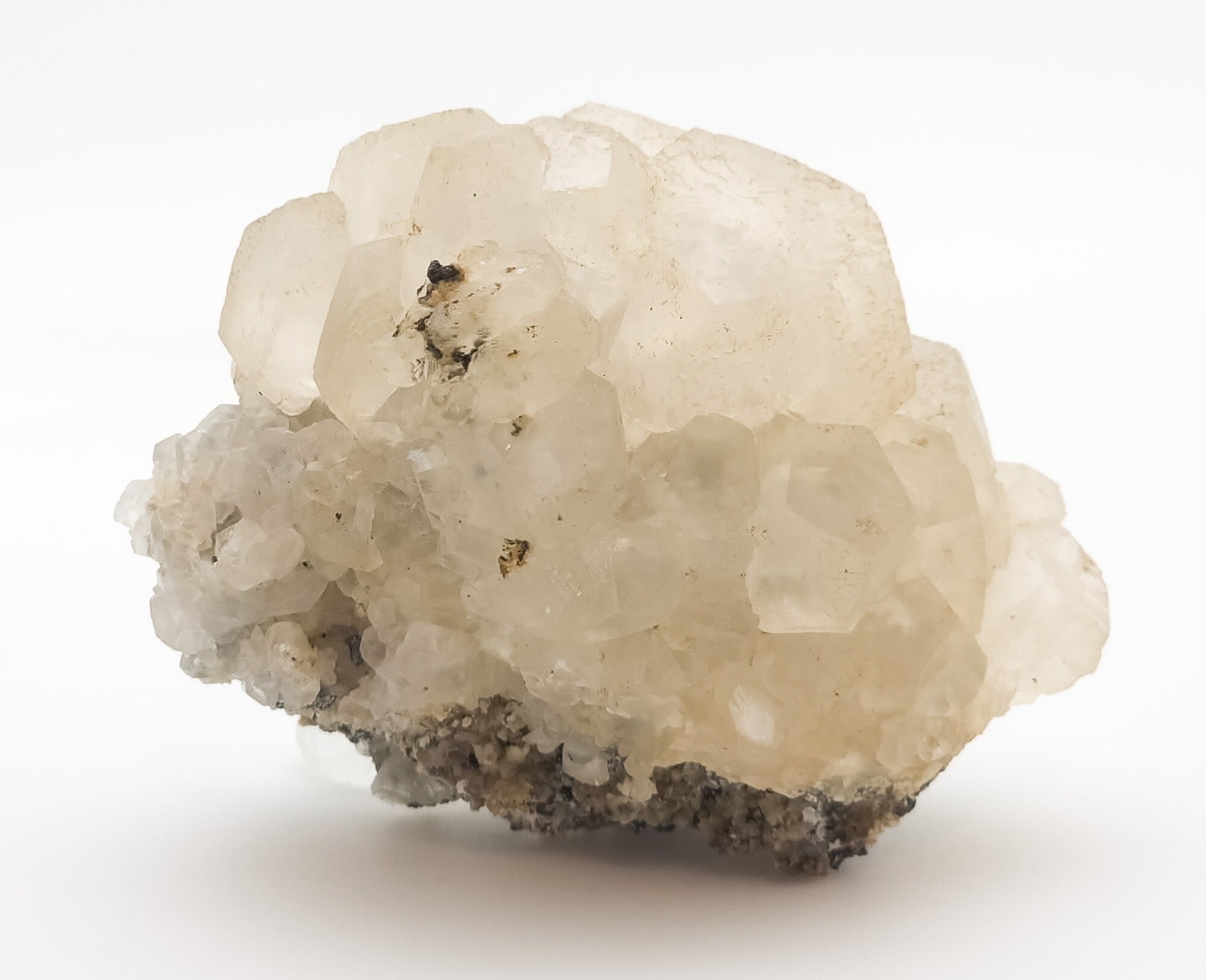 Beautiful small cabinet piece! Champagne colored calcite crystals to 2.6 cm cover a matrix of steely gray galena and siderite.