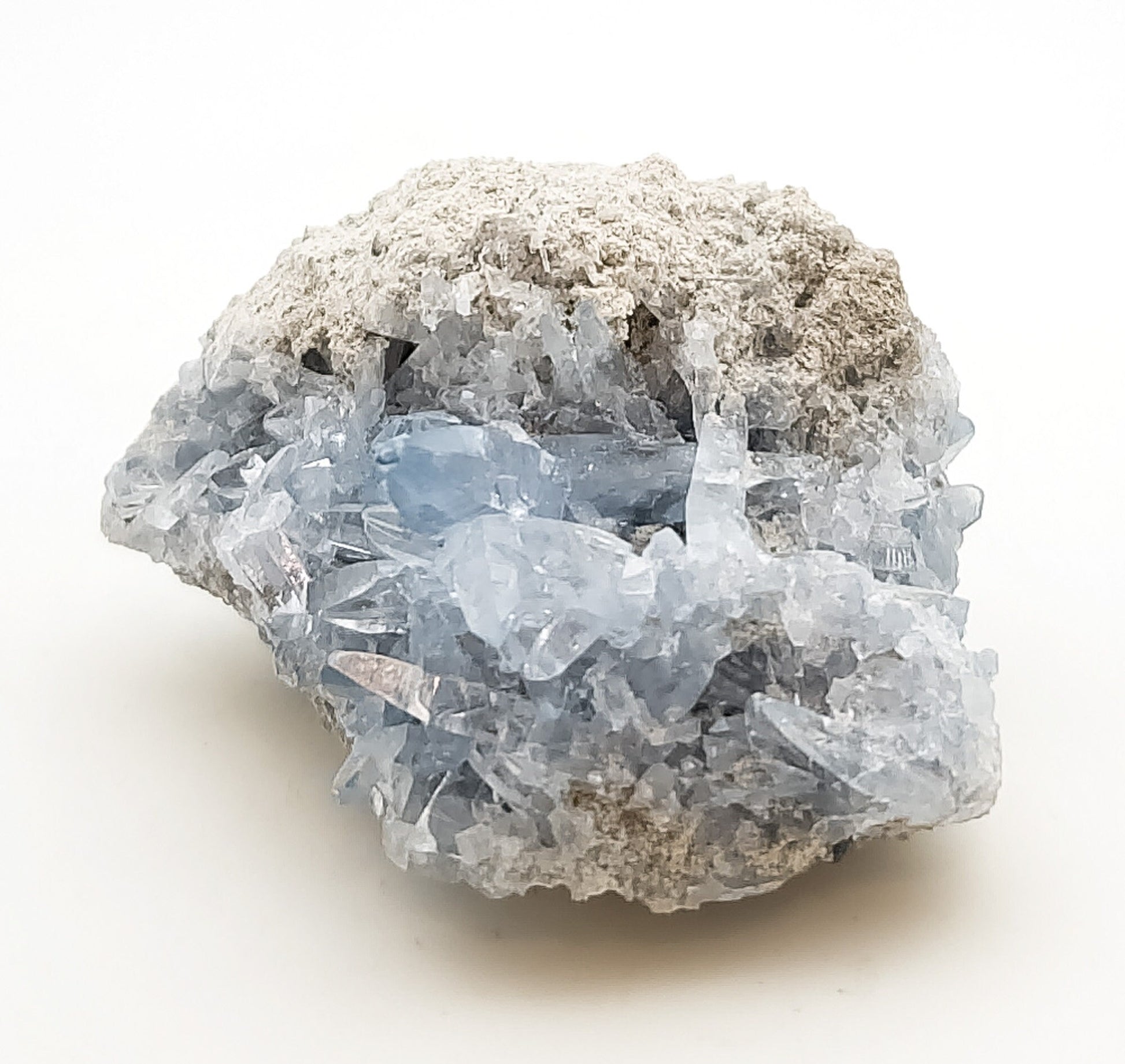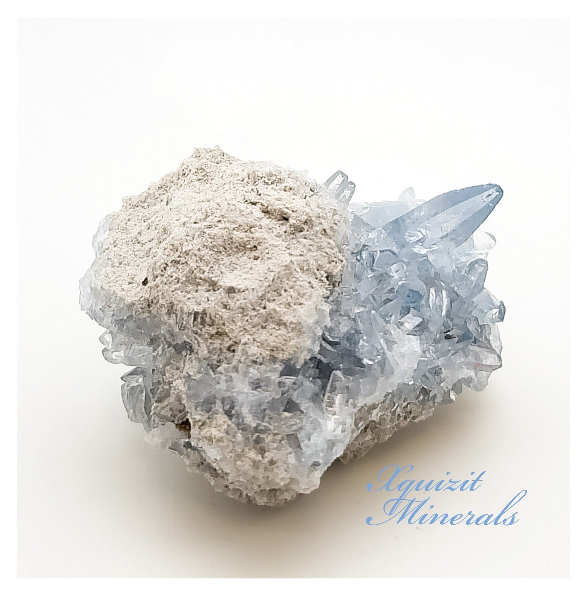 Offered here is a beautiful blue cluster of celestite crystals on matrix! The largest crystal measures 2.5 cm.