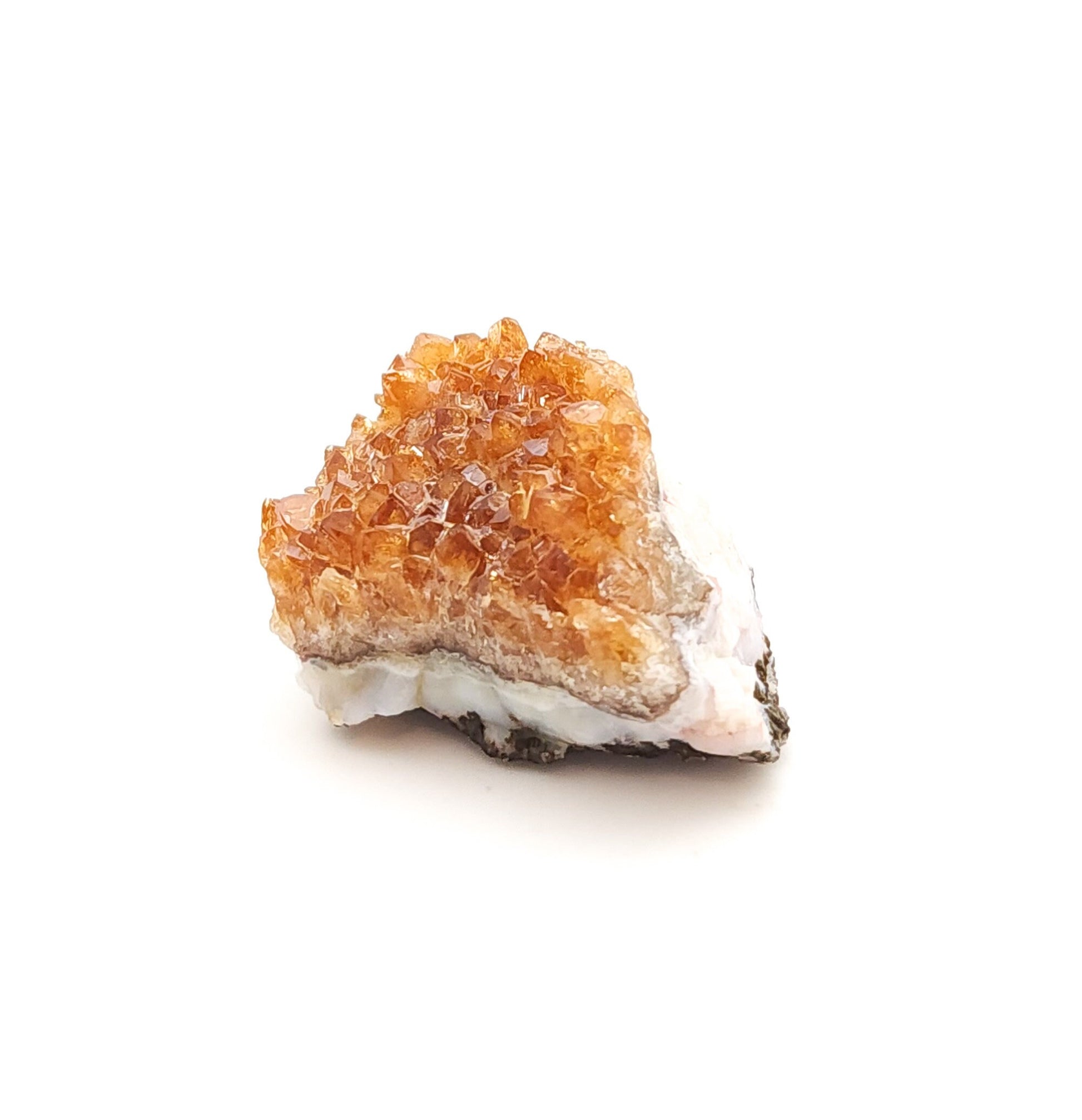 Offered here is a gorgeous specimen of sparkling, bright orange citrine crystals on contrasting layered matrix!
