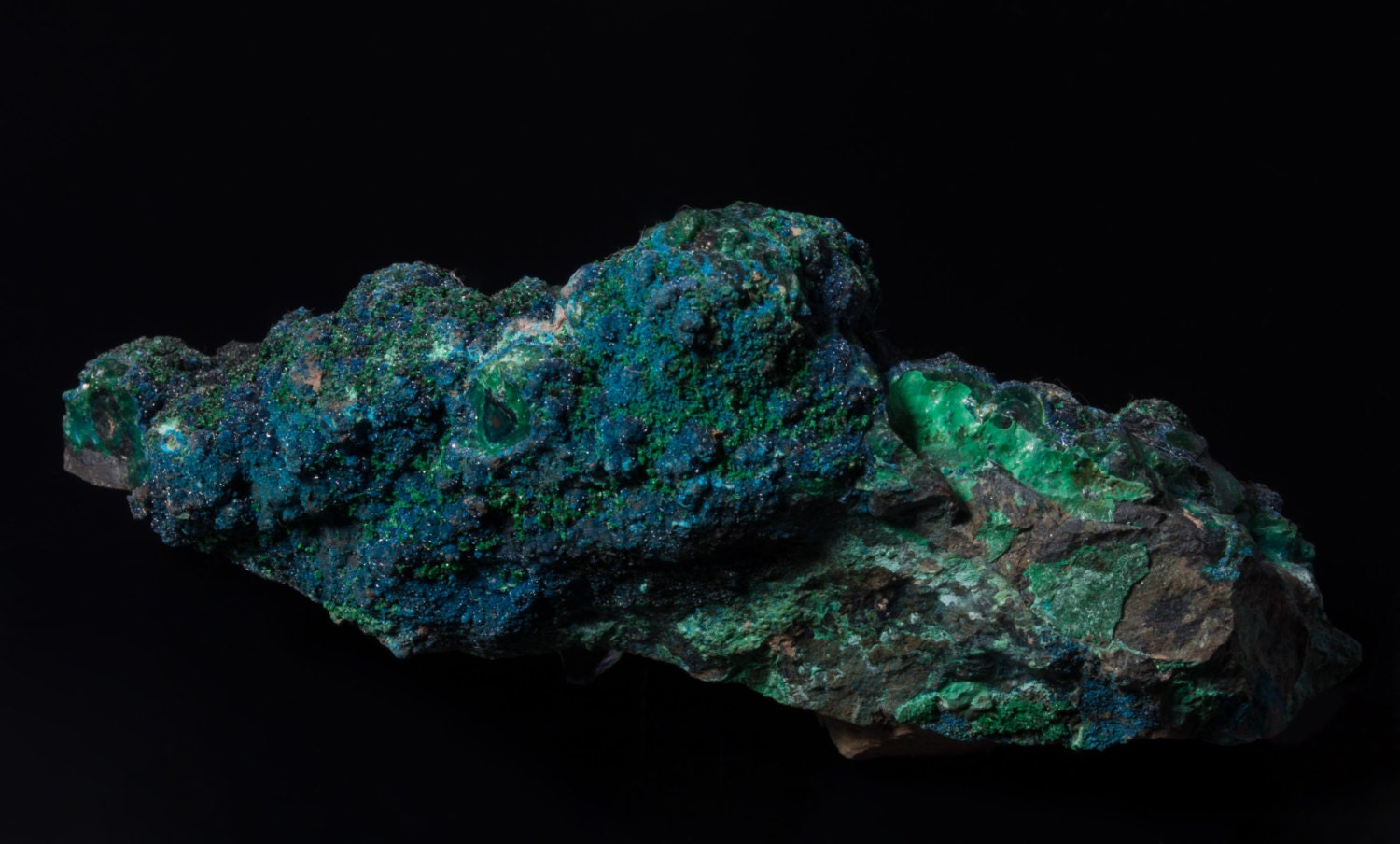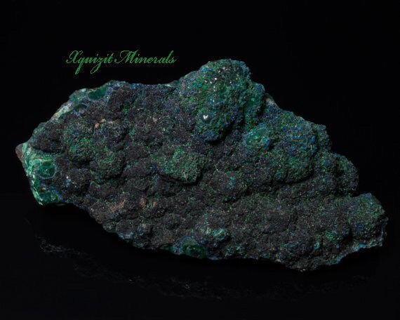 Here is the opportunity to own a beautiful, small cabinet size specimen of rare cornetite! Sparkling, deep, dark blue botryoidal crystals! Contrasting green malachite is also visible!