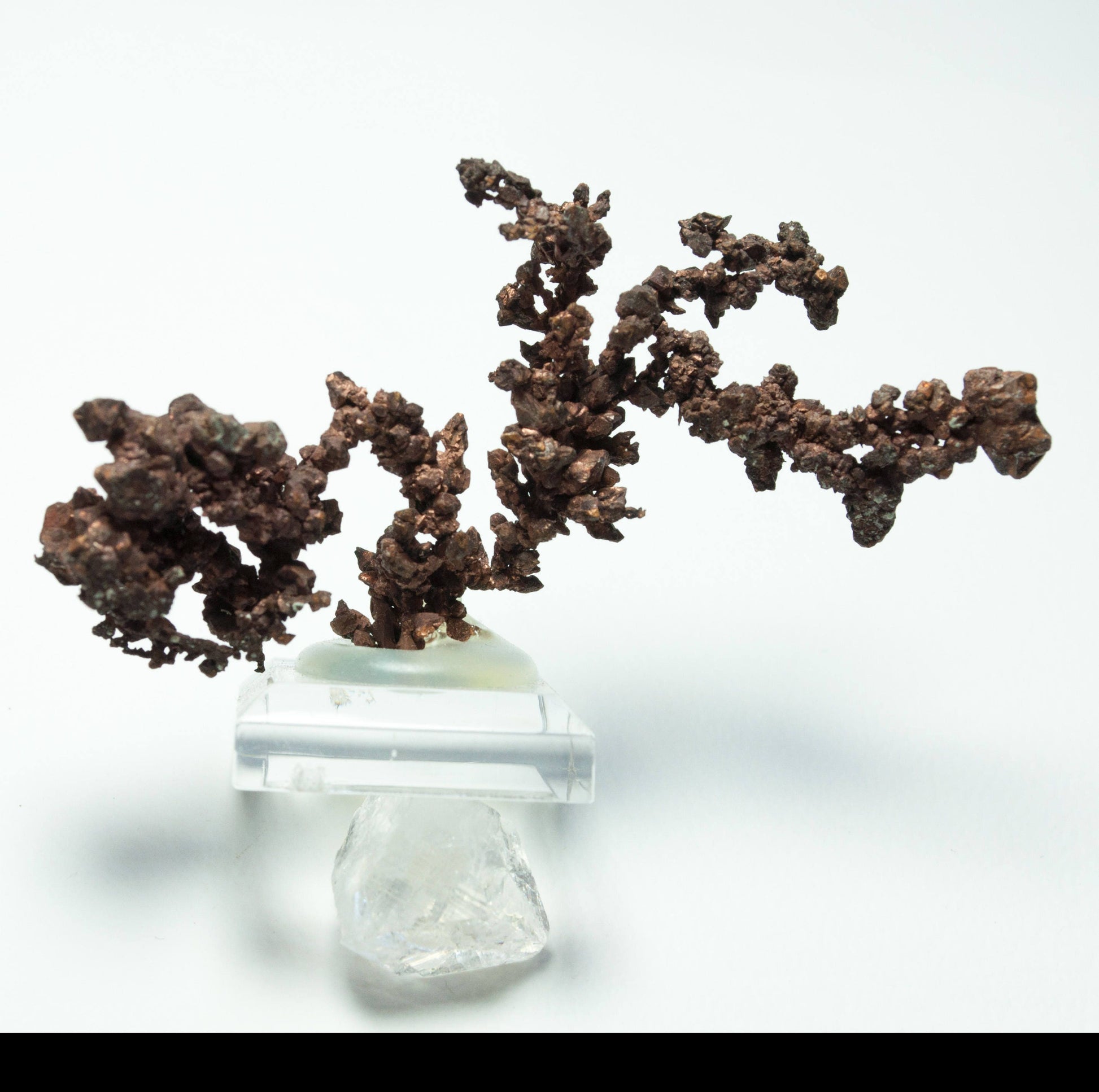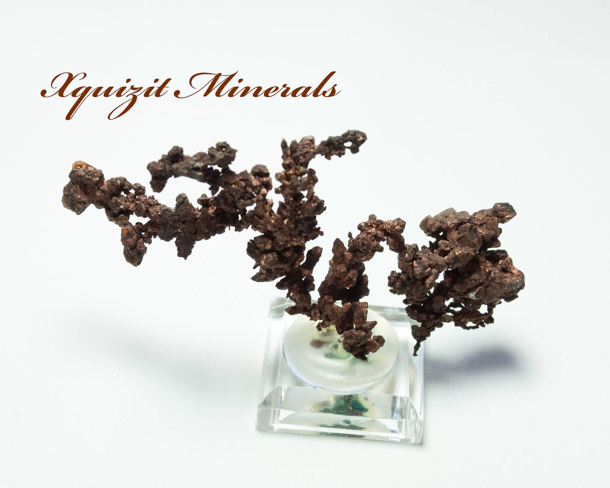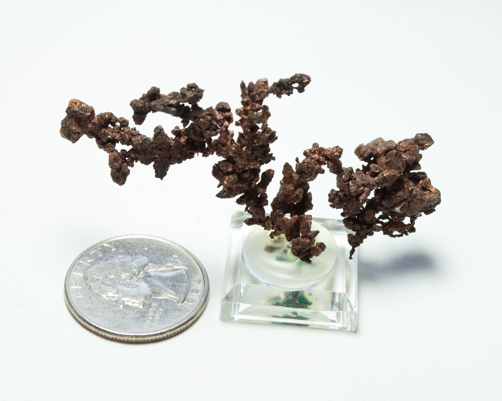 Offered here is an aesthetic, sculptural crystallized copper specimen! It is a perfect piece for the miniature specimen collector. The Itauz Mine is known to have produced some of the finest crystallized coppers in the world and this little beauty is no exception! The acrylic base is included.