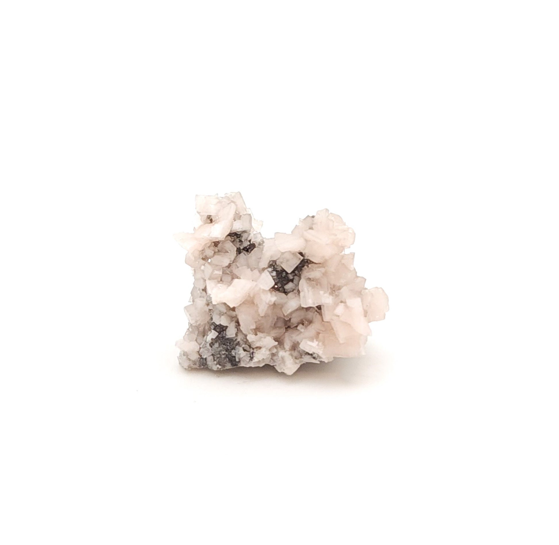 This is a lovely specimen of soft pink, saddle shaped dolomite crystals on crystallized marcasite. The dolomite crystals are incredibly lustrous and are a beautiful contrast to the marcasite! This is from a late 2017 find at this new locality.