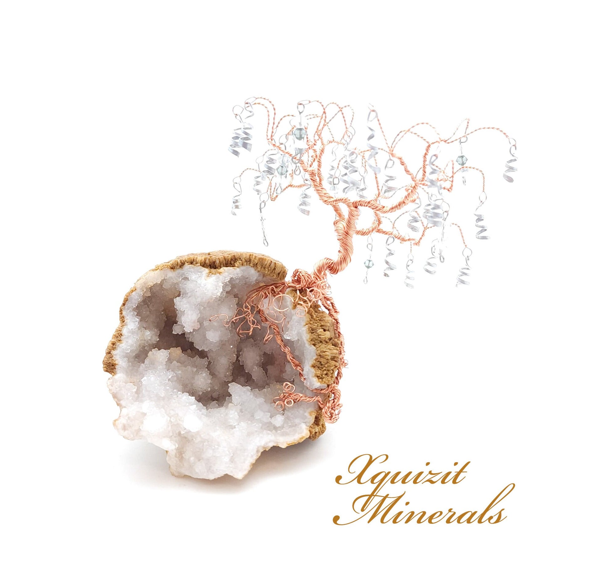 Offered here is a Morocco geode with a handcrafted copper "tree" with silver and crystal dangles. Cute home decor!