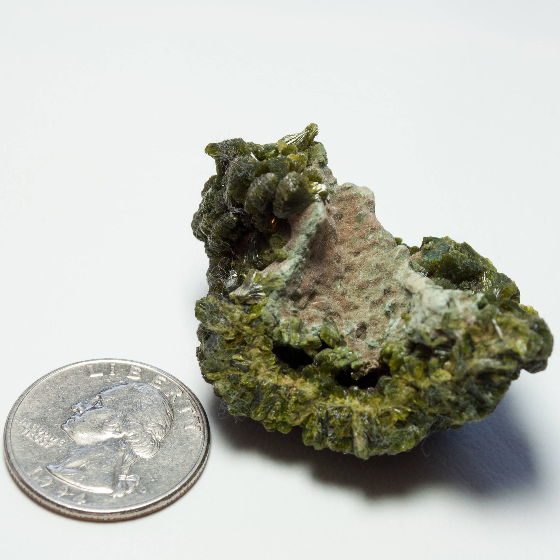 Unique and beautiful cluster of lustrous, radiating dark green epidote crystals on matrix. Very lustrous with high sparkle, and so nice in person!