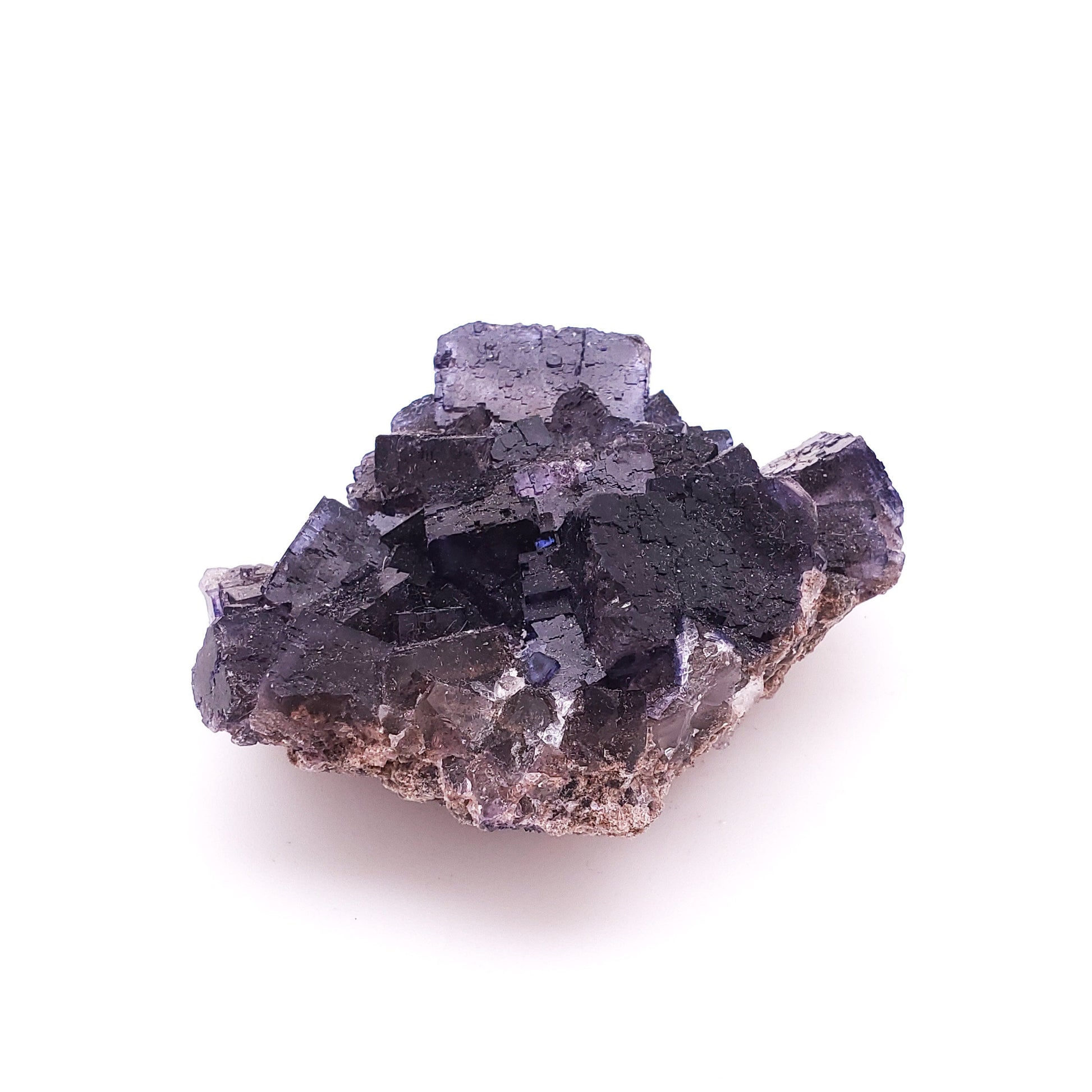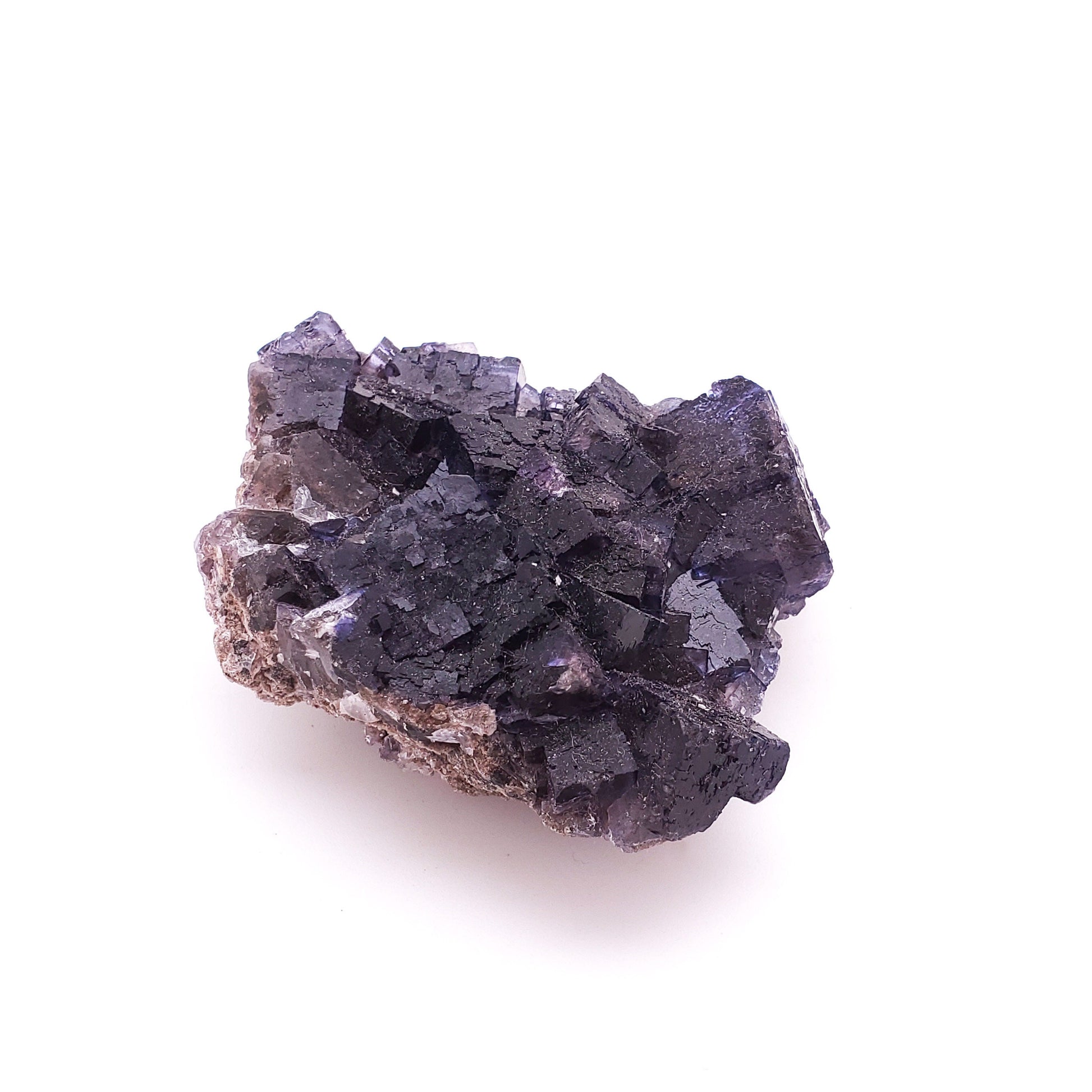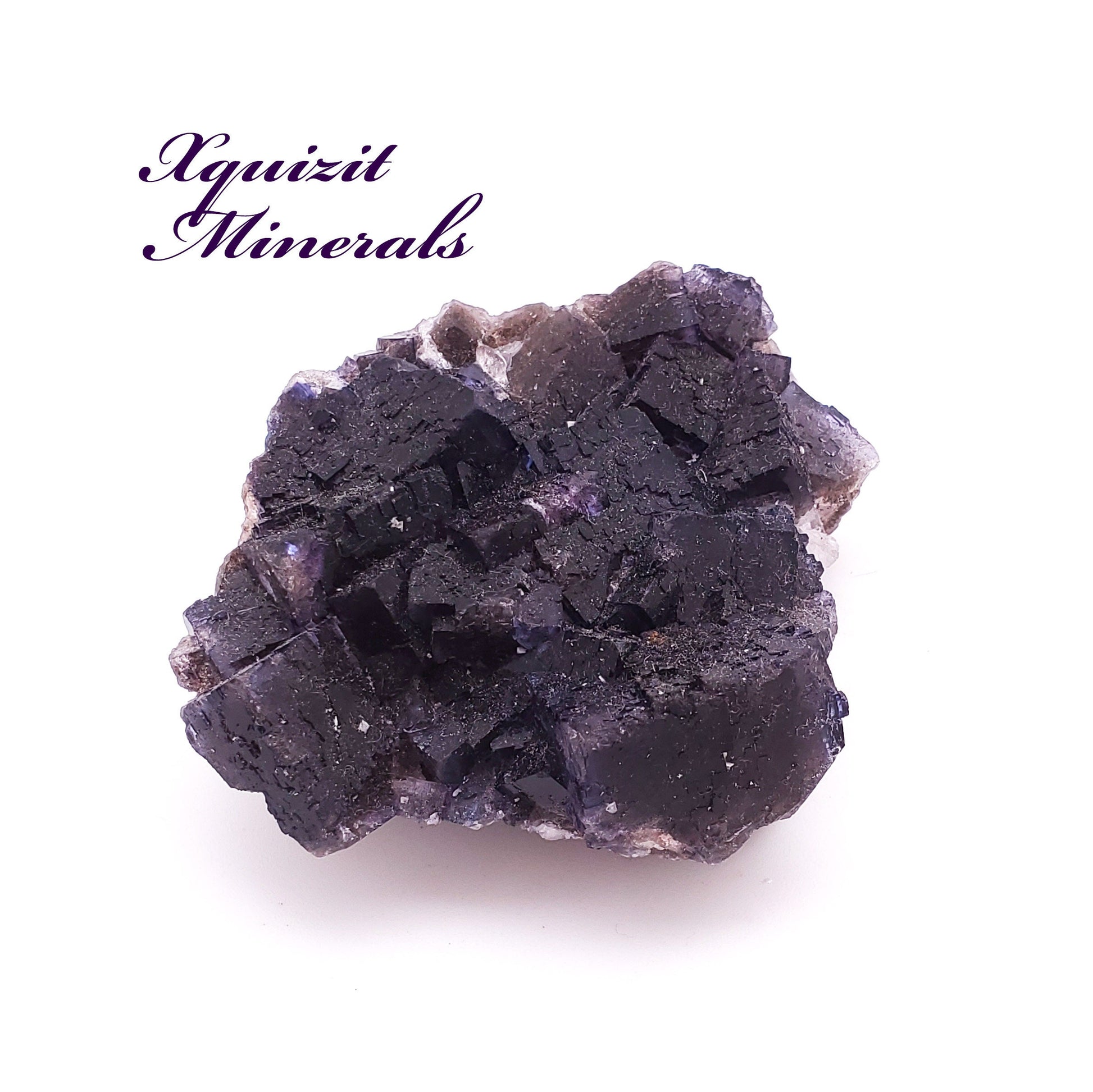 Offered here is a specimen of deep purple fluorite cubic crystals with stepped edges!