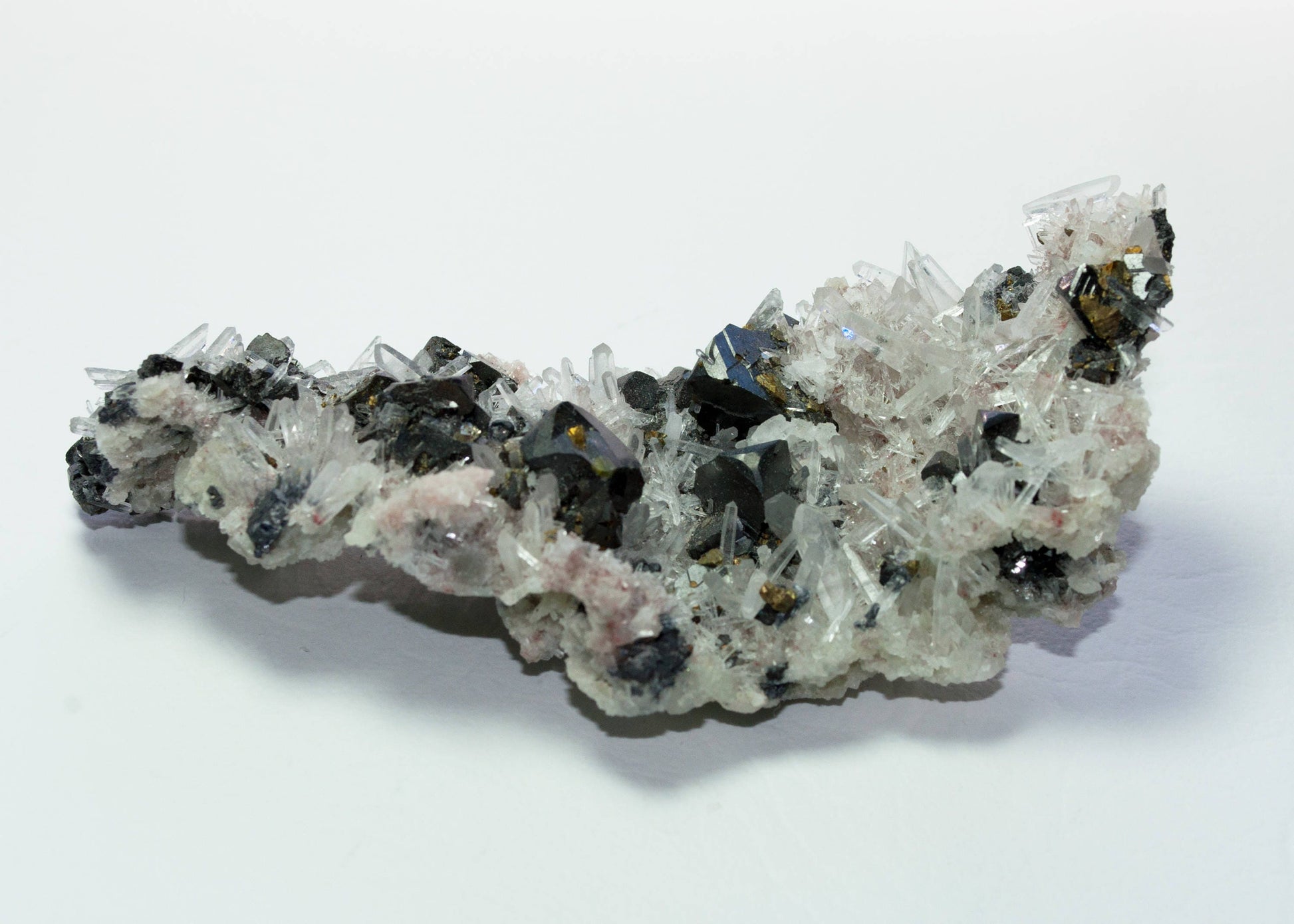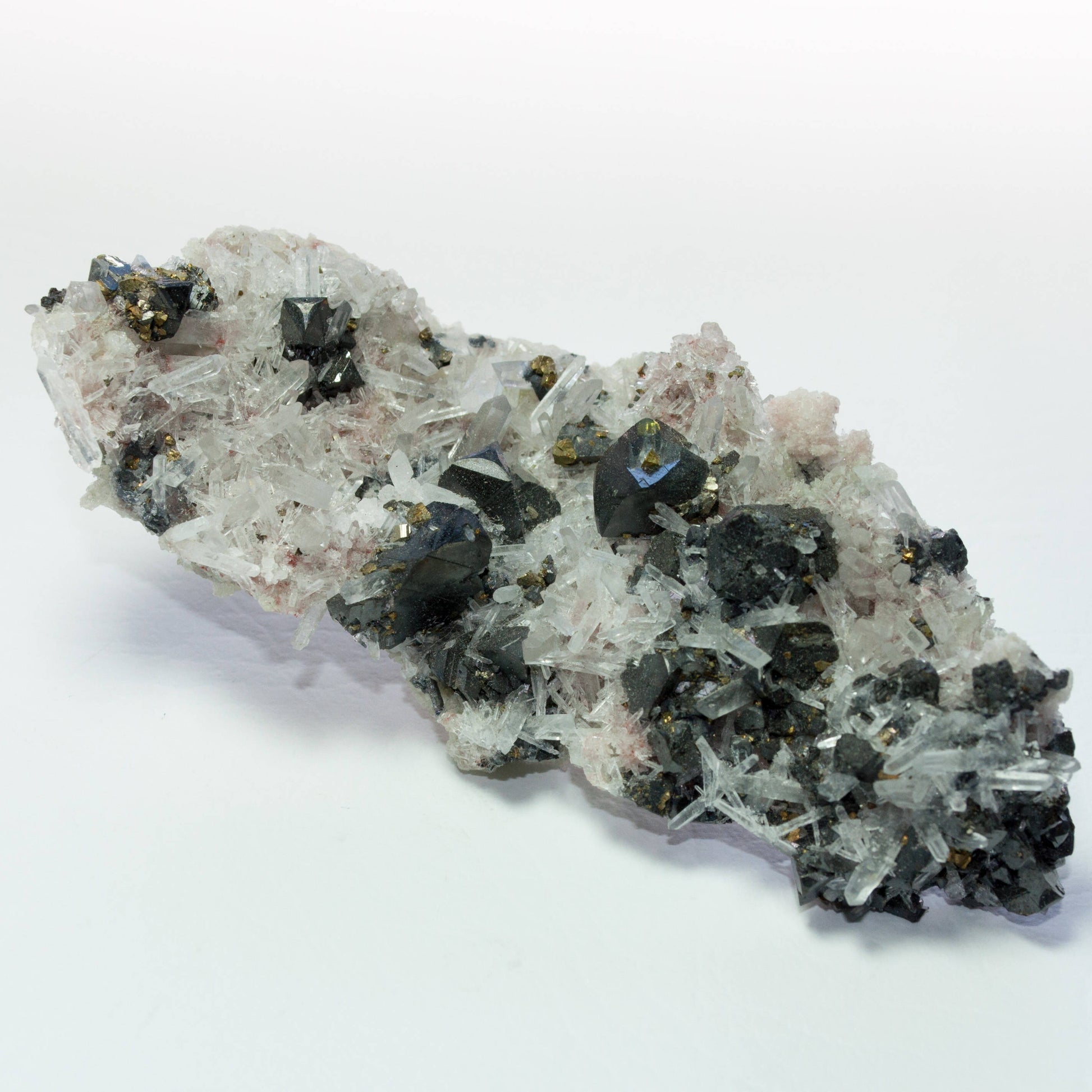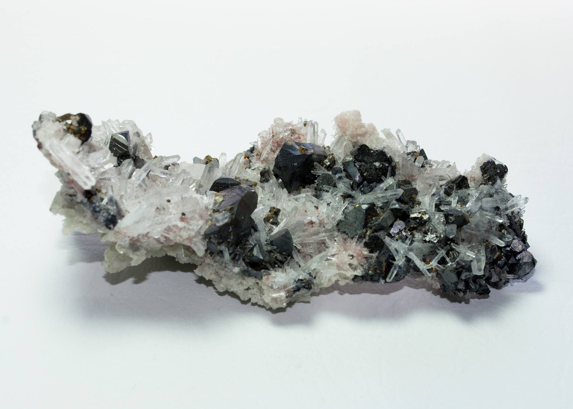 This is a cool and unique specimen that showcases multiple minerals! Sphalerite, galena and quartz crystals.