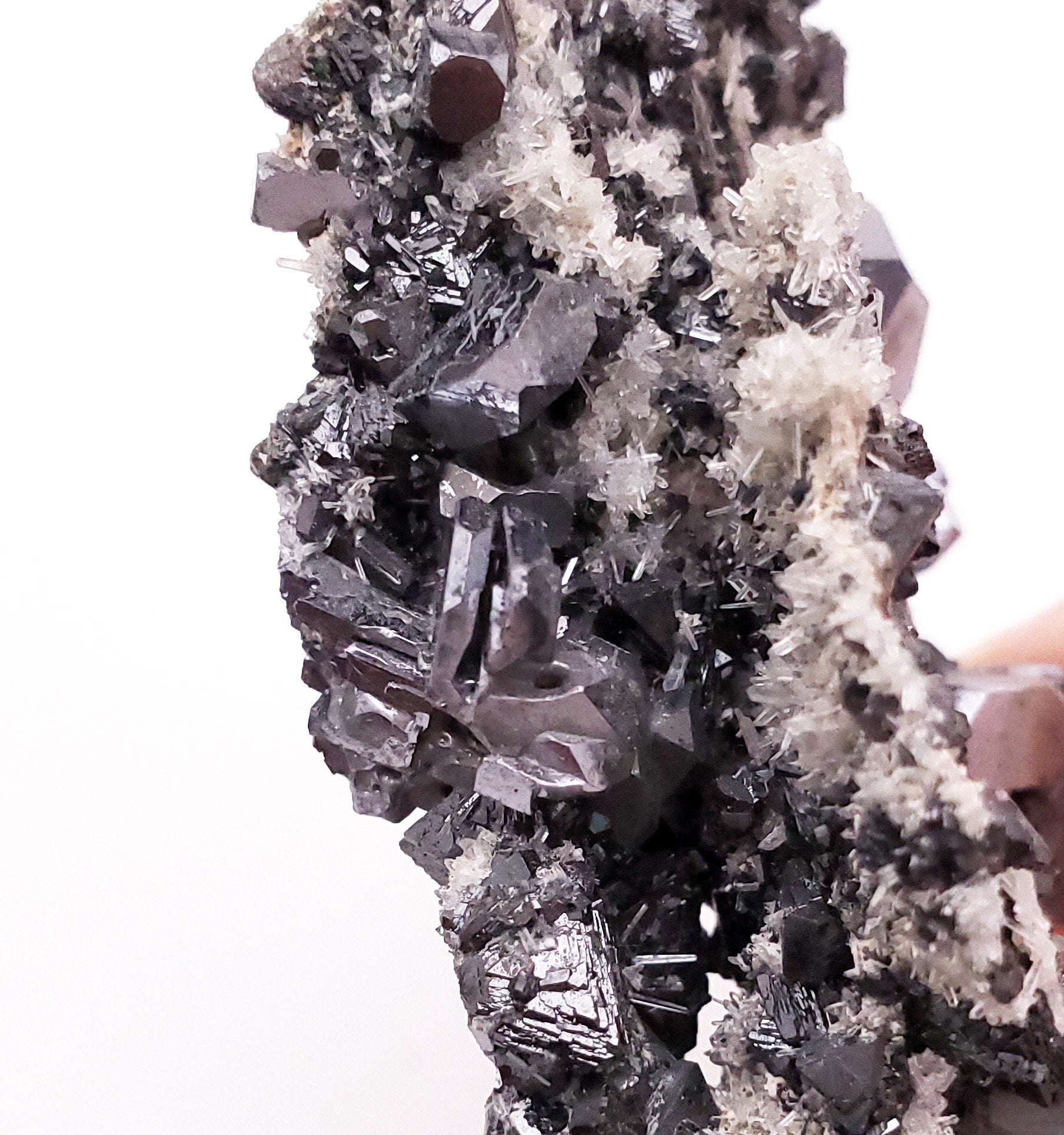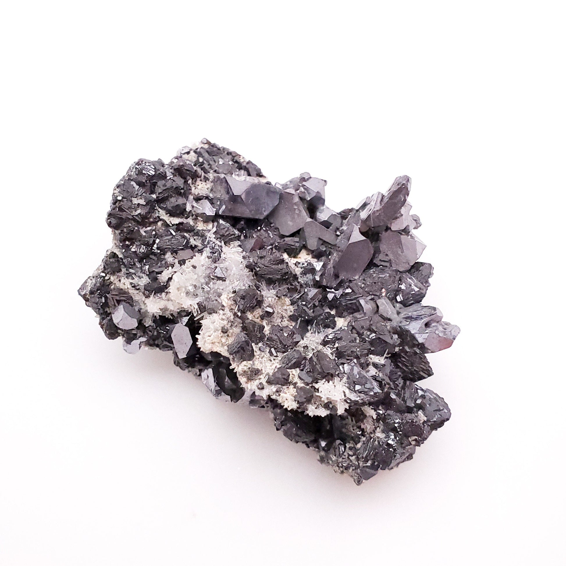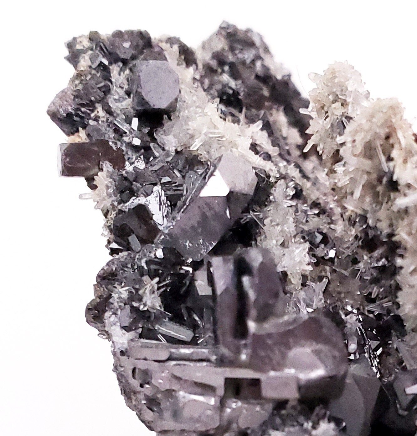 Offered here is a wonderful specimen of gray-metallic galena crystals, sphalerite crystals, golden pyrite and needle quartz crystals!