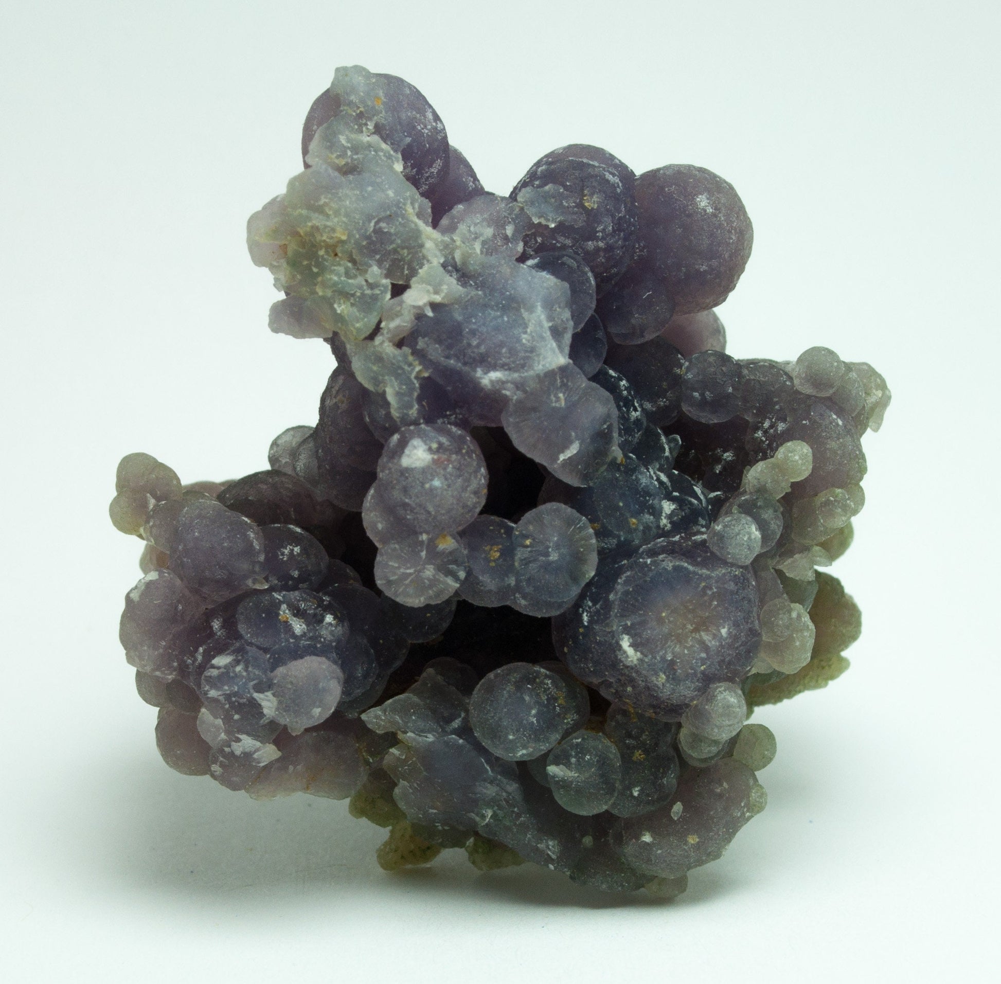 On the market, these specimens have also been referred to as "Grape Agate" as the brilliant purple radial aggregates (balls) resemble a "bunch" of grapes. Specimens have a beautiful three-dimensional form with a lustrous, sparkling druze surface.