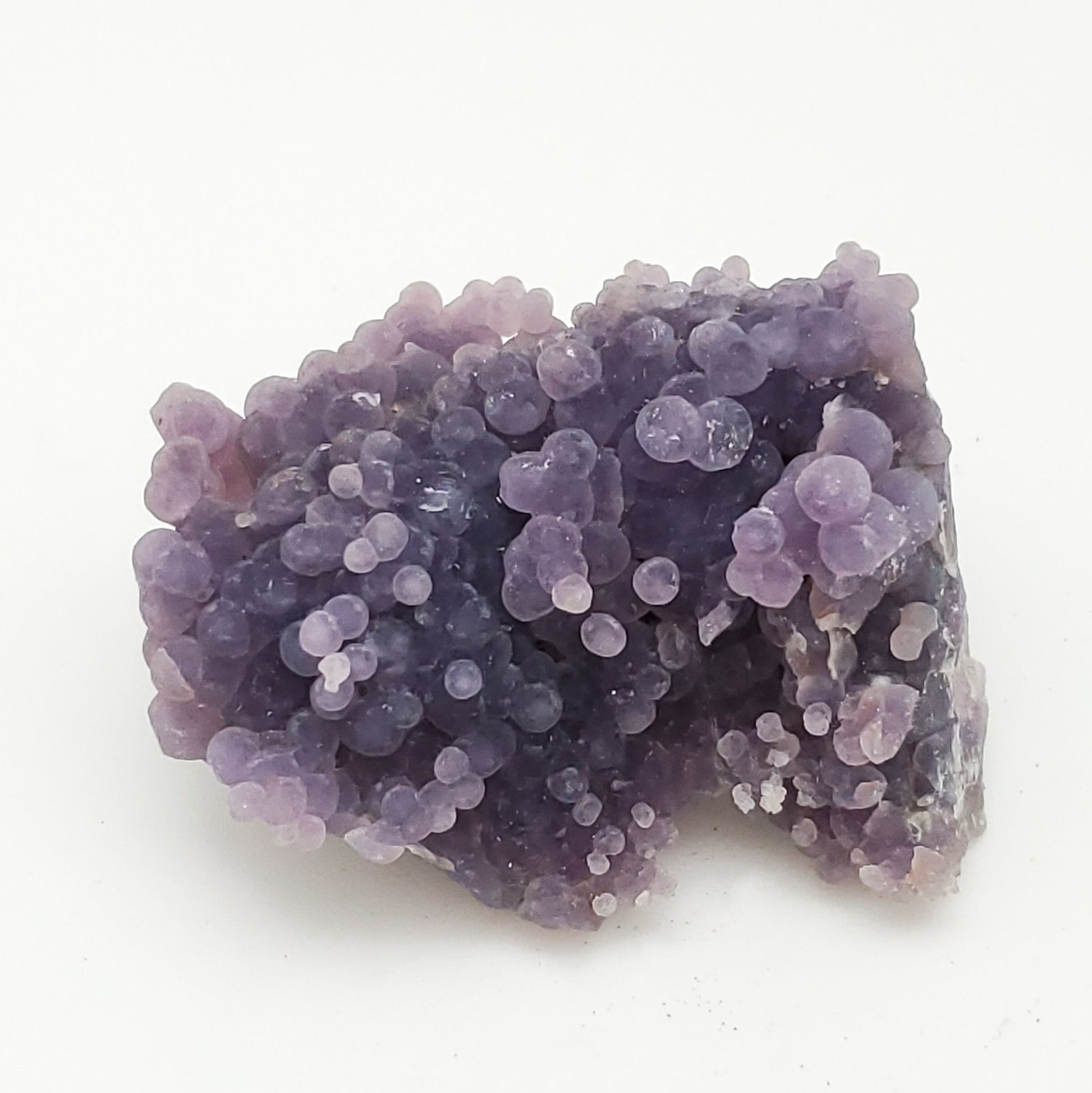 Offered here is a beautiful specimen of botryoidal chalcedony! On the market, these specimens have also been referred to as "Grape Agate" as the brilliant purple radial aggregates (balls) resemble a "bunch" of grapes. Specimens have a beautiful three-dimensional form with a lustrous, sparkling druze surface.