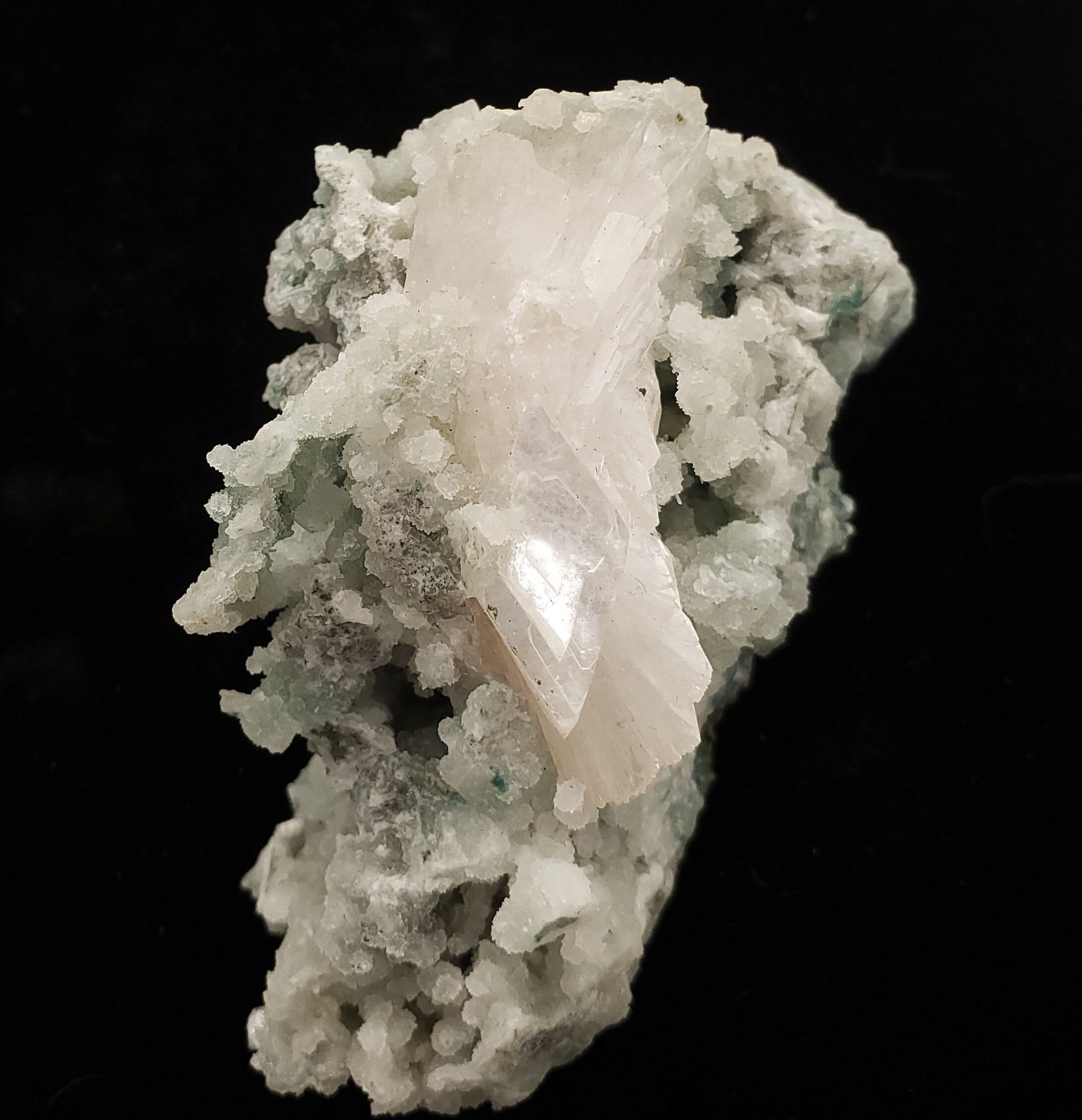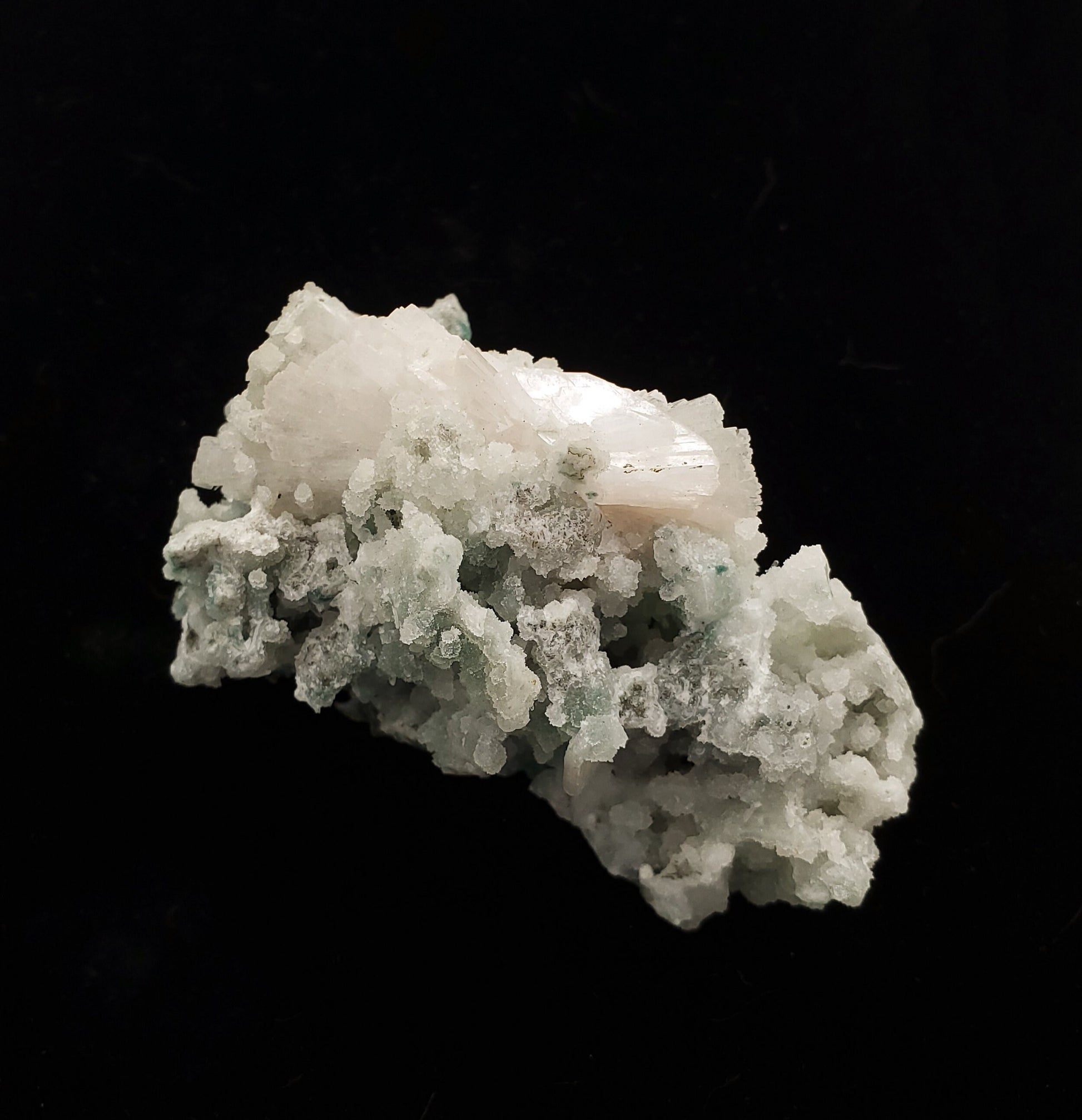 Here is a beautiful specimen of lustrous, light pink heulandite crystals on a matrix of druse chalcedony!