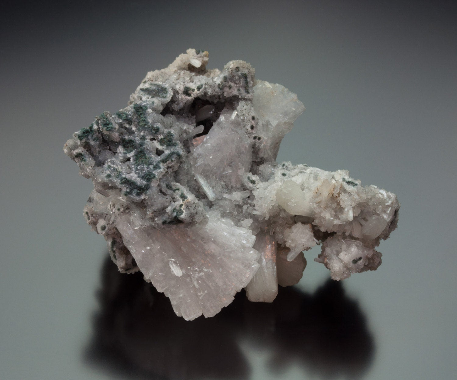 Pearly, soft pink and cream colored heulandite crystals on druse chalcedony!