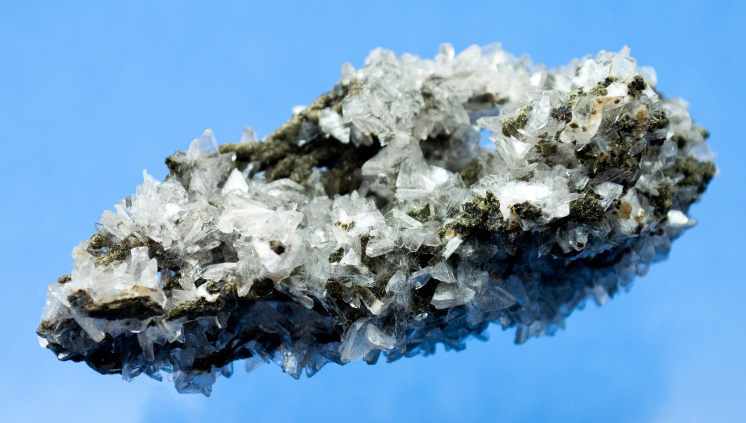 Transluscent heulandite crystals on greenish gray druse chalcedony!