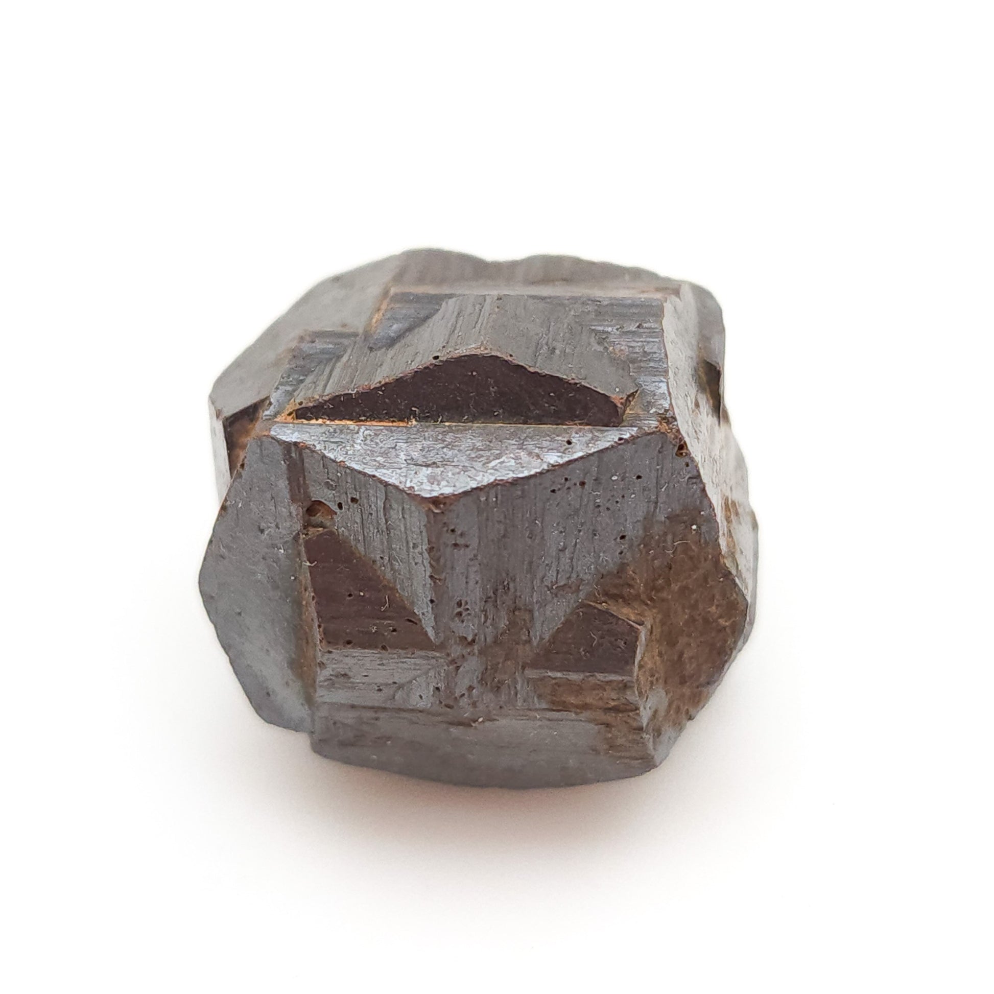 Offered here is a mahogany colored Limonite pseudomorph after Pyrite from Gachala, Columbia! Multiple iron cross twins create fascinating geometry on this gorgeous specimen. A nice rarity from the famous Gachala emerald deposit!