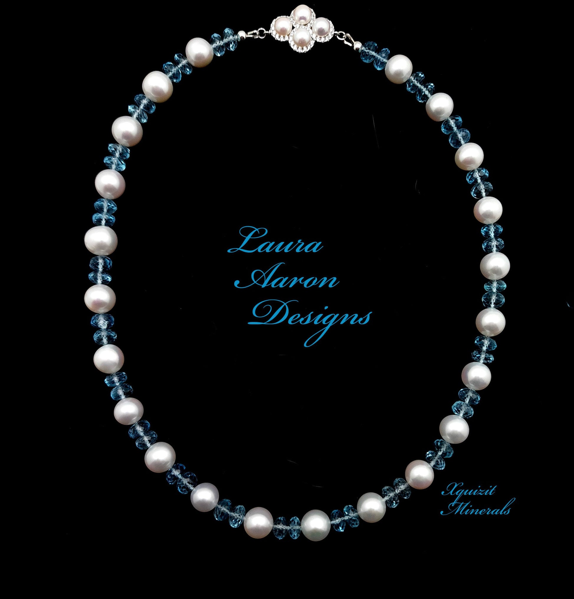 In this gorgeous design, I have combined 115 carats of richly colored blue topaz with 10 mm, highly lustrous white pearls! This elegant and timeless piece is finished with a beautiful pearl and sterling silver clasp.