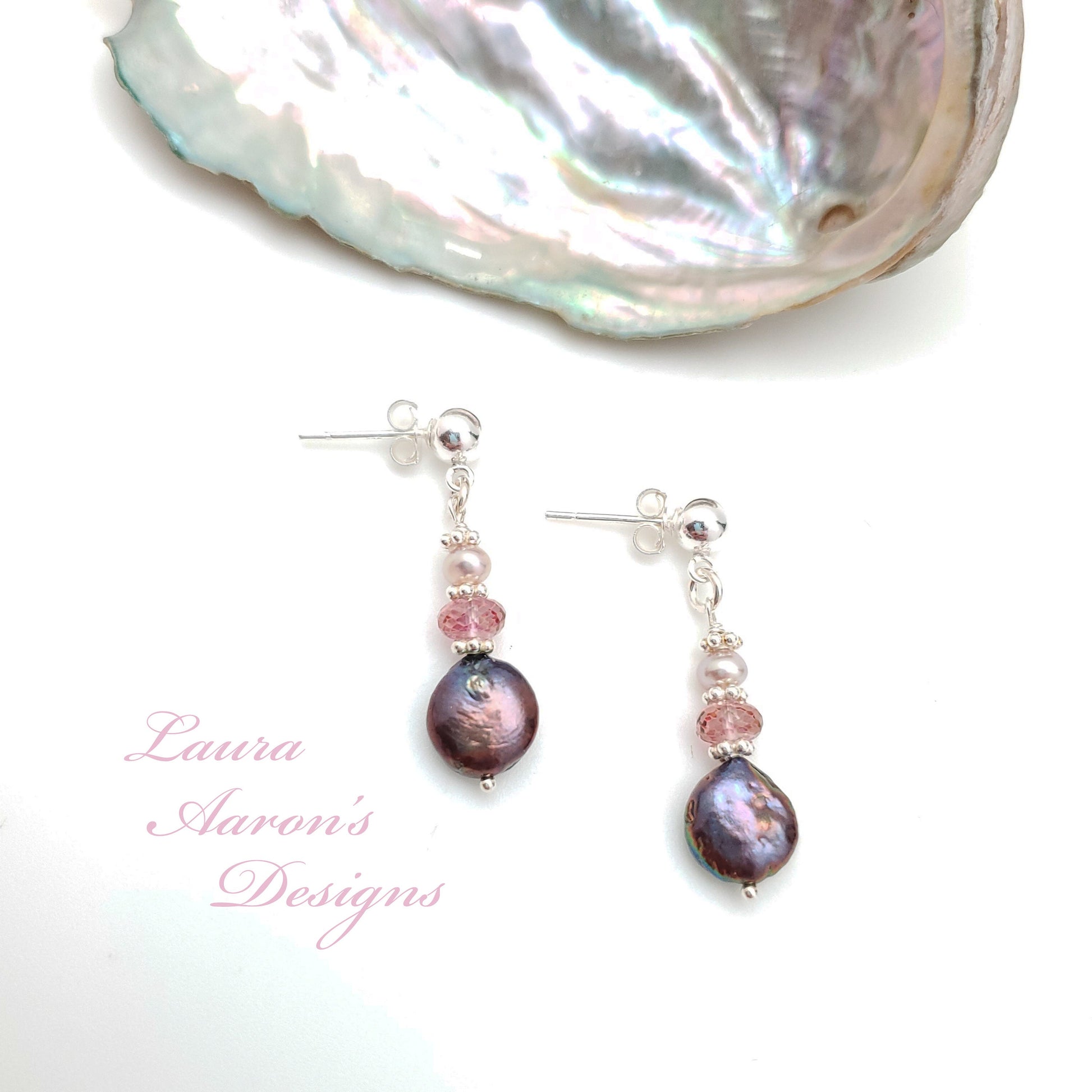 Here I have suspended cultured pearls from sterling silver studs! These elegant earrings pair perfectly with necklace shown and sold separately.