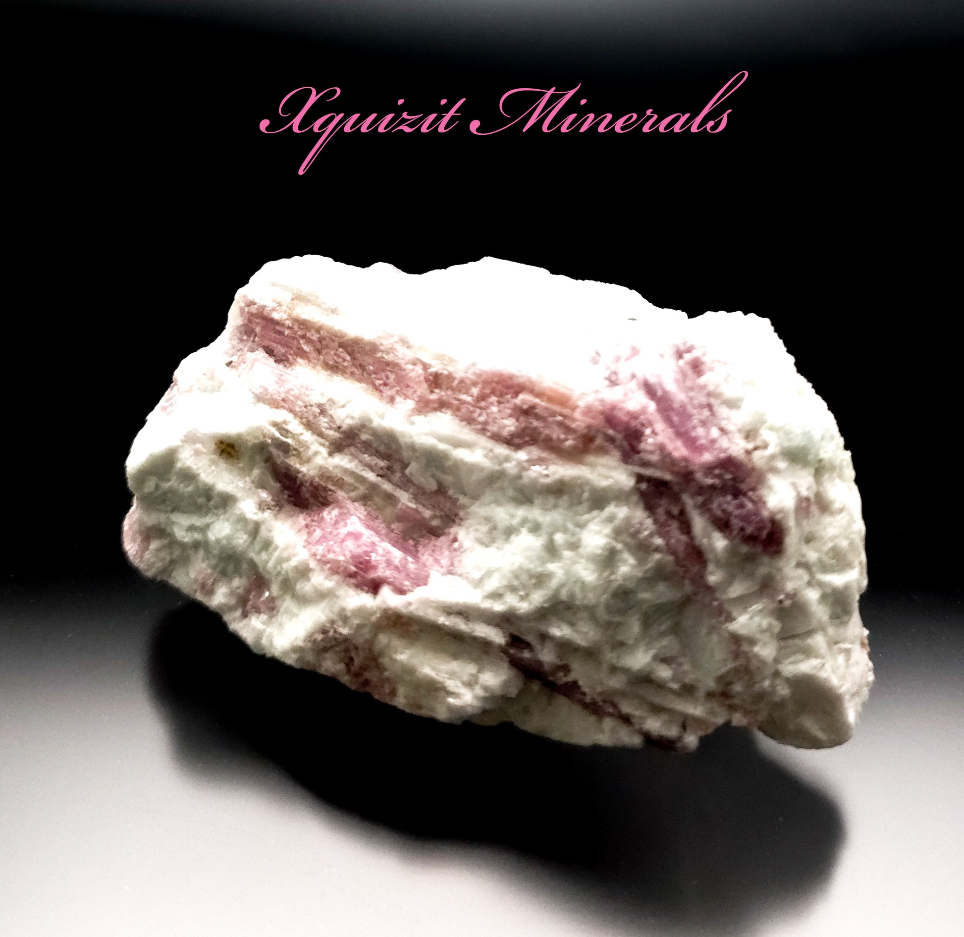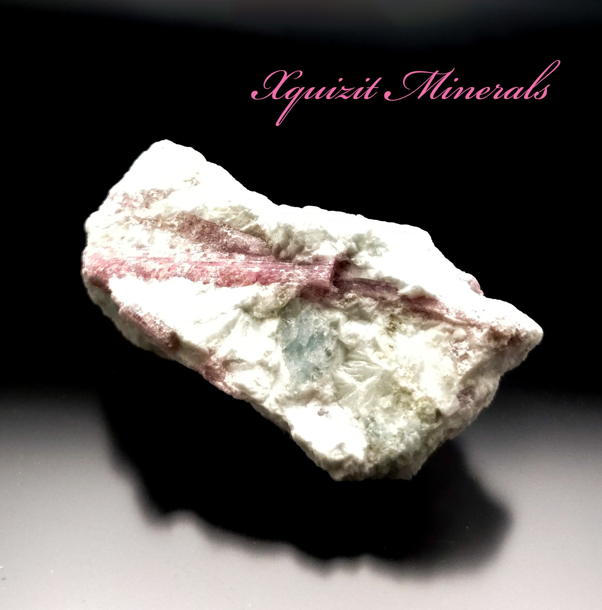 Offered here is a beautiful specimen of pink tourmalines (also known as Elbaite) and blue aquamarine in a quartz matrix! The contrast of pink, blue and white make for a very aesthetic piece.
