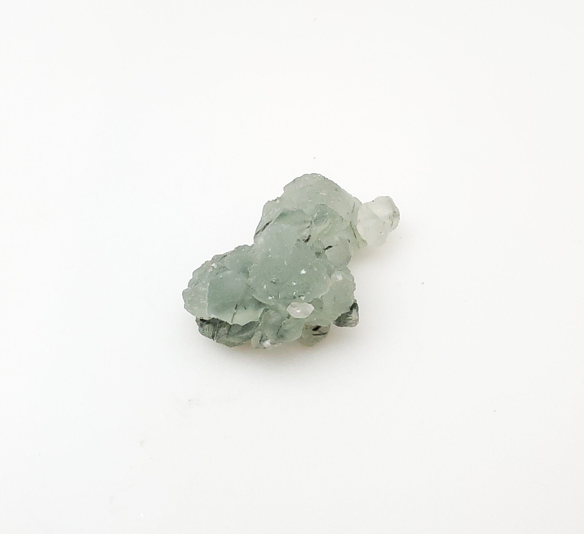 Offered here is a nice prehnite specimen with dark green epidote inclusions.