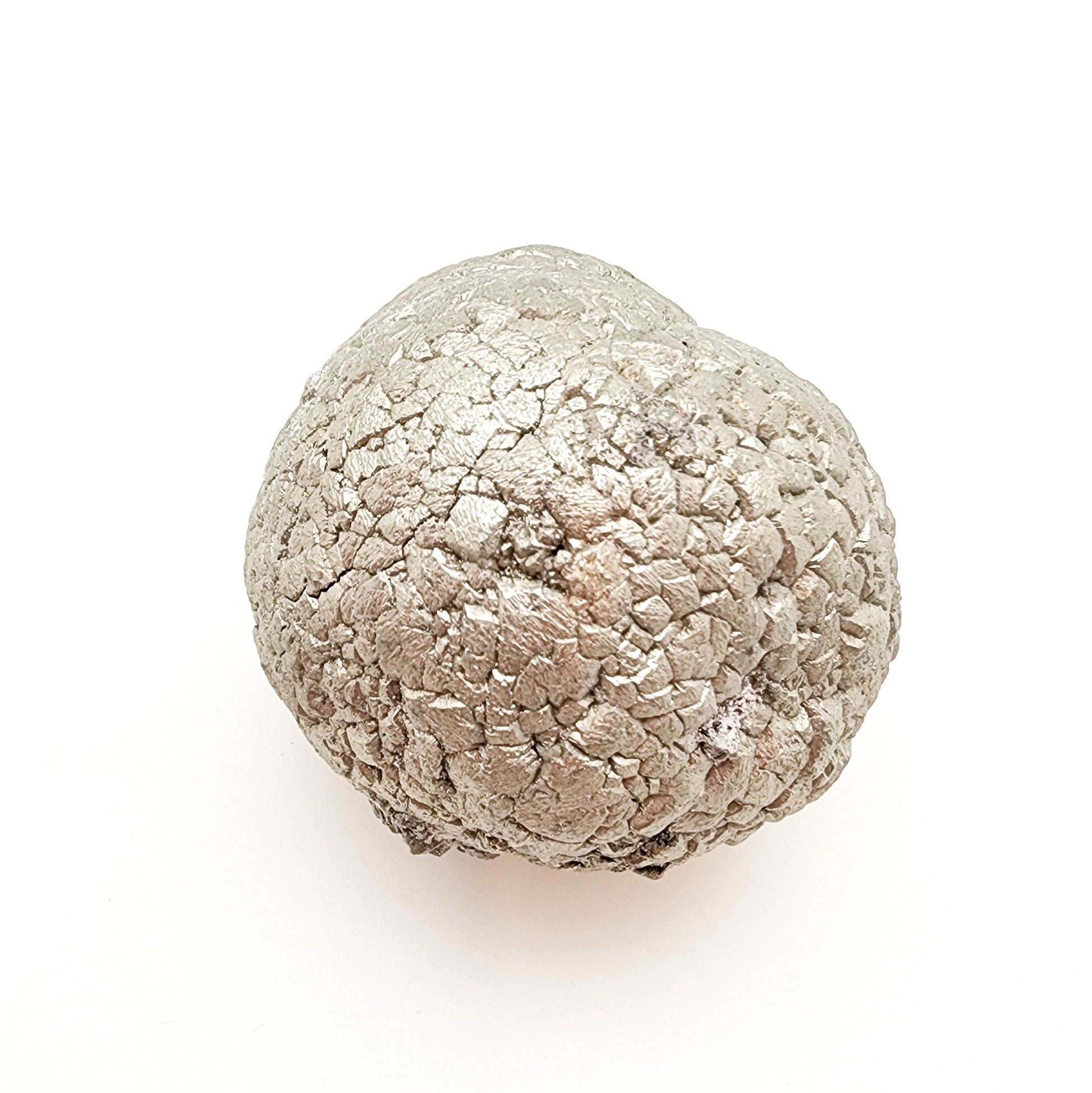 Offered here is a really cool pyrite concretion a/k/a pyrite ball. Highly lustrous, beautiful silvery gold color. The mineral pyrite, also known as “fool's gold”, is an iron sulfide and comes in many different crystal habits. Approximately 354 grams.