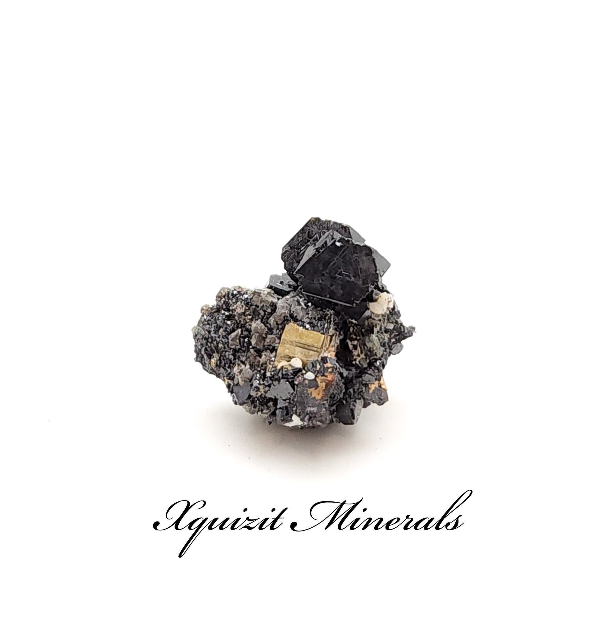 Offered here is a very aesthetic specimen that showcases multiple minerals! Sphalerite, pyrite and quartz crystals sparkle in this perfect specimen for the miniature mineral collector!