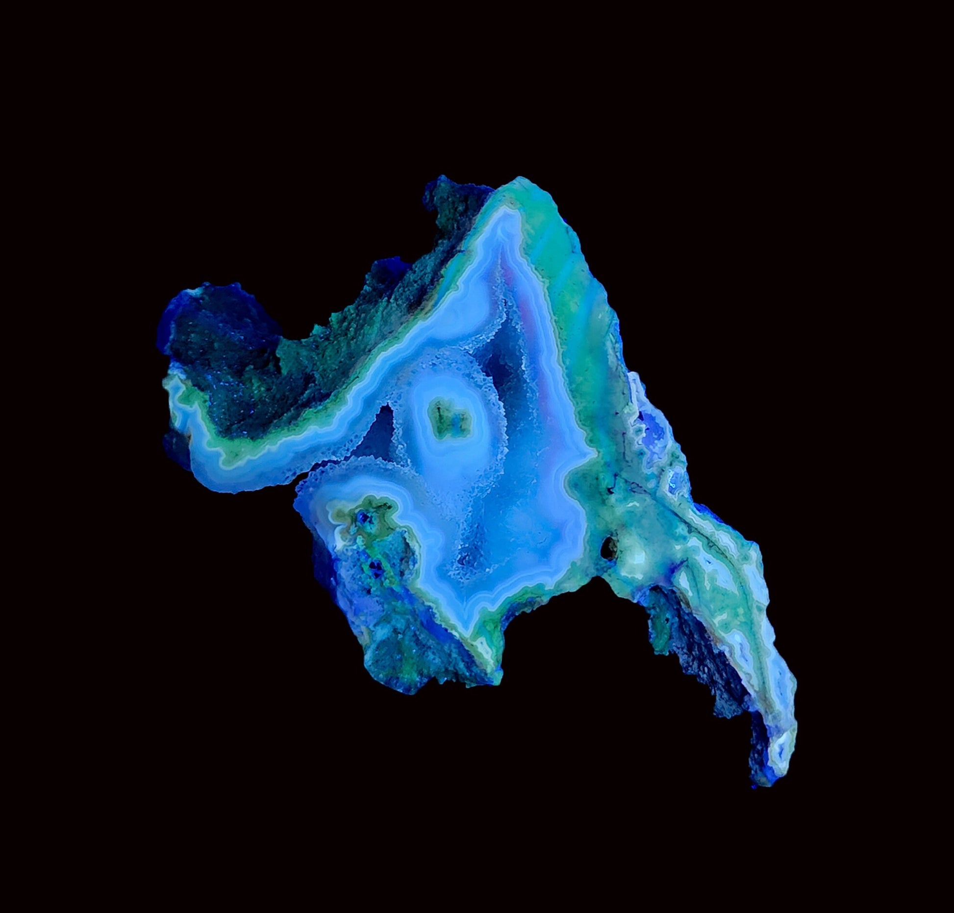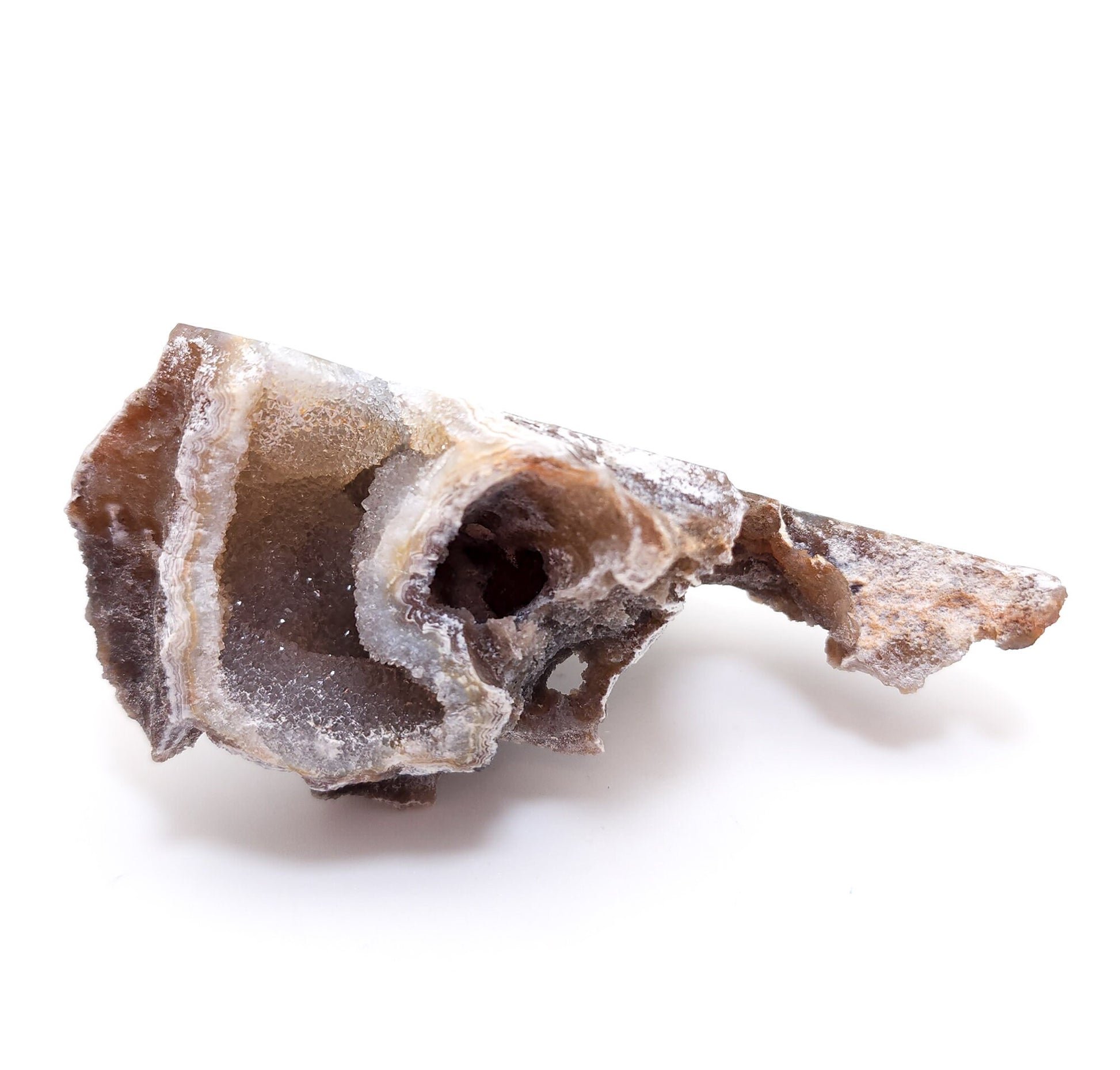 Offered here is a beautiful and unique piece of agatized coral. Pockets of sparkling druze add to the mystical beauty of this piece. It fluoresces under UV light as well! The Florida Legislature designated Agatized Coral (Fossilized Coral) as Florida's state stone in 1979. Highly prized among collectors, Agatized Coral is believed to be between 25-38 million years old and from the Oligocene-Miocene period. Found in ancient ocean beds, Agatized Coral is pseudomorphic which means it is formed when a variety of Chalcedony replaces the minerals in coral. Trace minerals in the agate create a range of colors ranging from white to red which can give the fossil a "banded" look. It is most often found in the Tampa Bay area, however, specimens have been found in the Econfina and Suwannee Rivers.