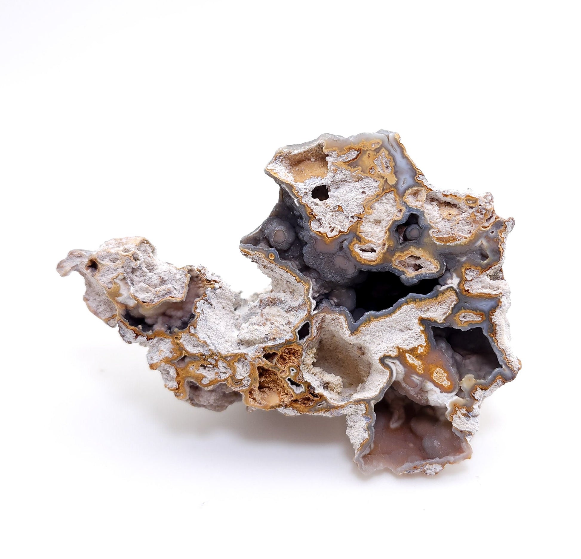 The Florida Legislature designated Agatized Coral (Fossilized Coral) as Florida's state stone in 1979. Highly prized among collectors, Agatized Coral is believed to be between 25-38 million years old and from the Oligocene-Miocene period. Found in ancient ocean beds, Agatized Coral is pseudomorphic which means it is formed when a variety of Chalcedony replaces the minerals in coral. Trace minerals in the agate create a range of colors ranging from white to red which can give the fossil a "banded" look. It is most often found in the Tampa Bay area, however, specimens have been found in the Econfina and Suwannee Rivers.