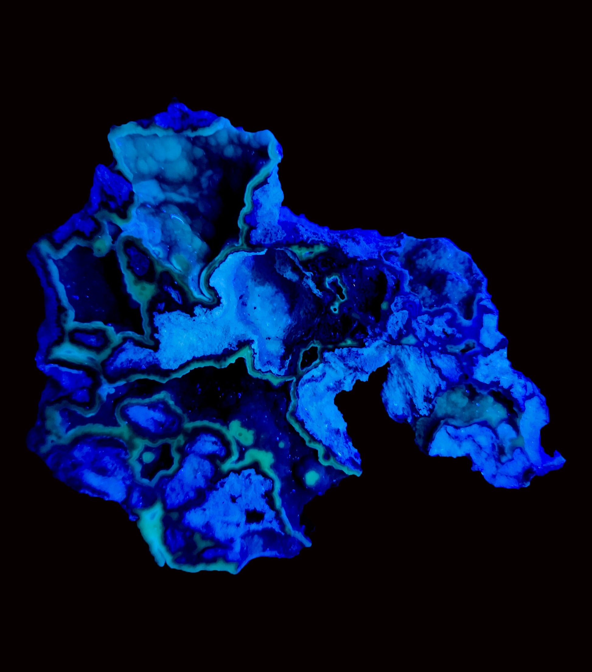Offered here is a beautiful and unique piece of agatized coral. Pockets of sparkling druze add to the mystical beauty of this piece. It fluoresces under UV light as well!