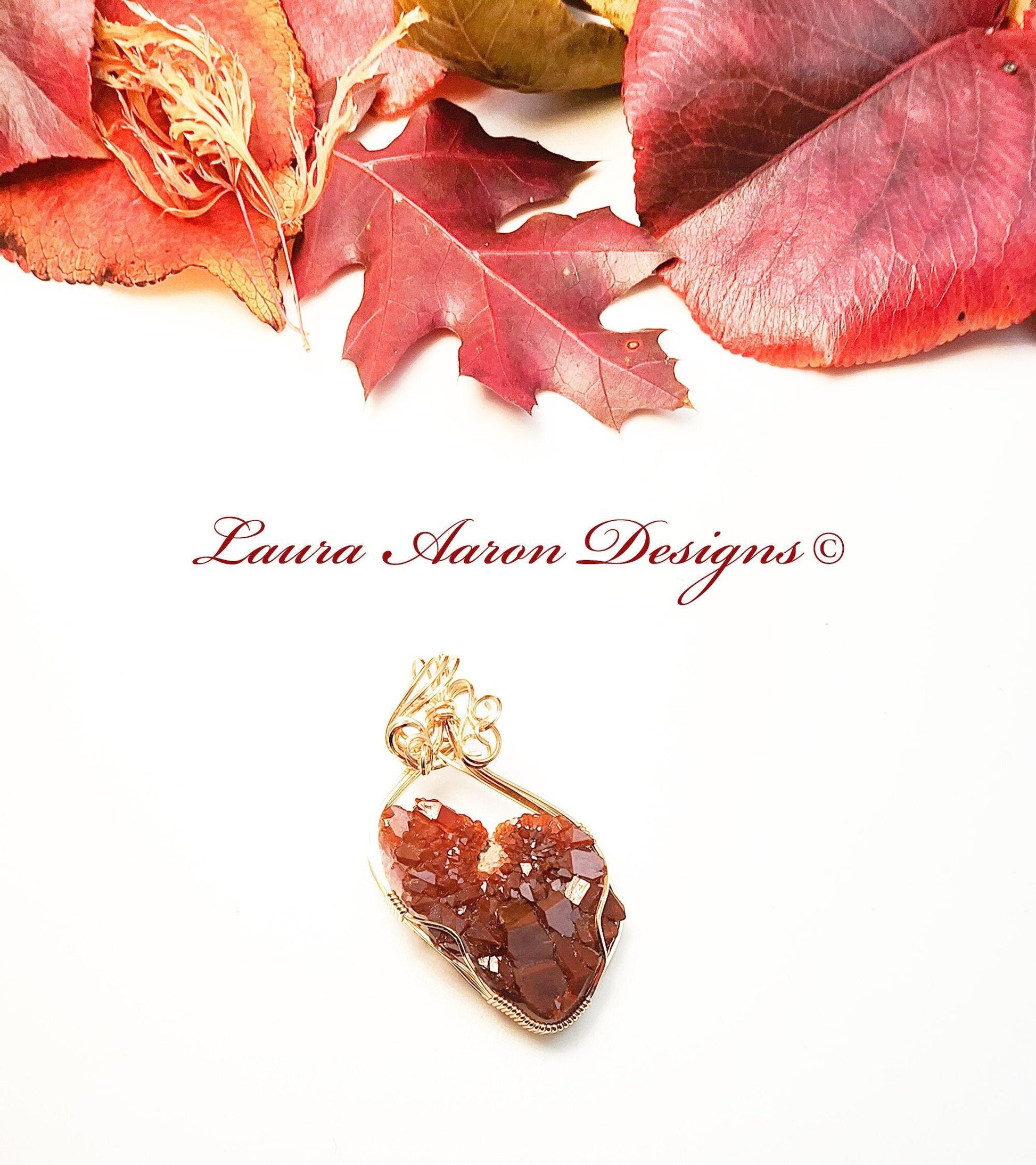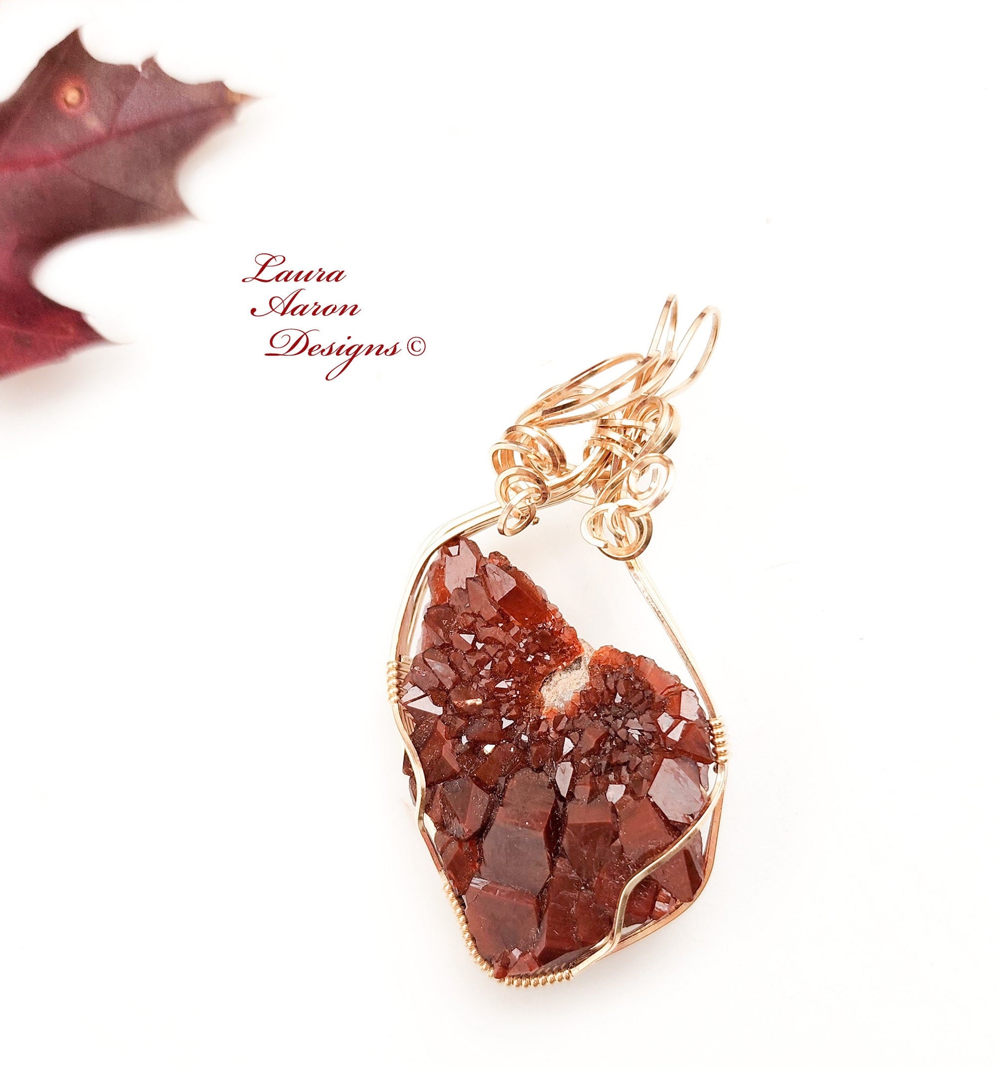 Inspired by the warm and vibrant colors of fall, I have set this beautiful, rare Thunder Bay (Ontario) Amethyst in 14kt gold fill wire. Thunder Bay amethyst is unique in that many of the specimens have a reddish coating of hematite on the crystals. This unique beauty comes set on an 18 inch chain.